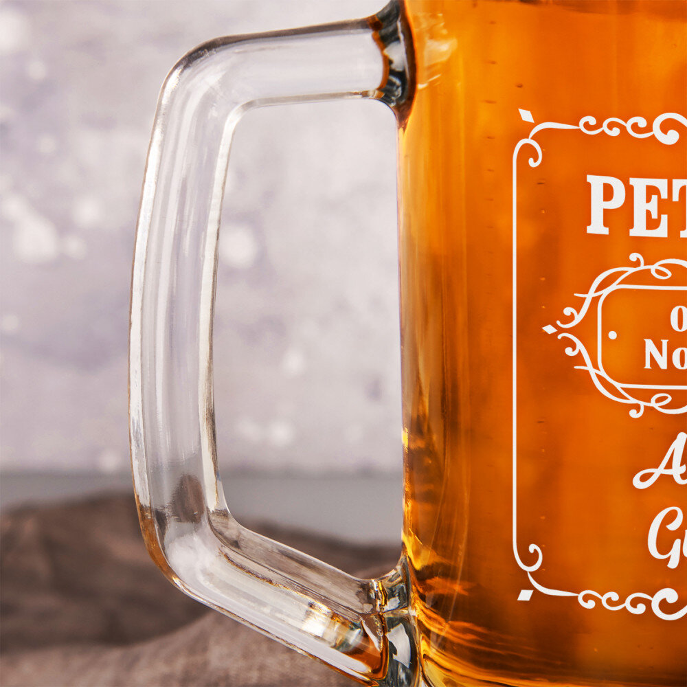 Der Bierkrug aus hochwertigem Glas ist äußerst langlebig und anlauf- und kratzfest. Es verfügt über einen bequemen Griff, der Komfort und Sicherheit bei der Verwendung gewährleistet. Eine personalisierte Gravur wird auf einer perfekt glatten Oberfläche angebracht. Ein Bierkrug ist ein tolles Geschenk für einen Bierliebhaber. Es ist ein tolles Geschenk für viele Anlässe!