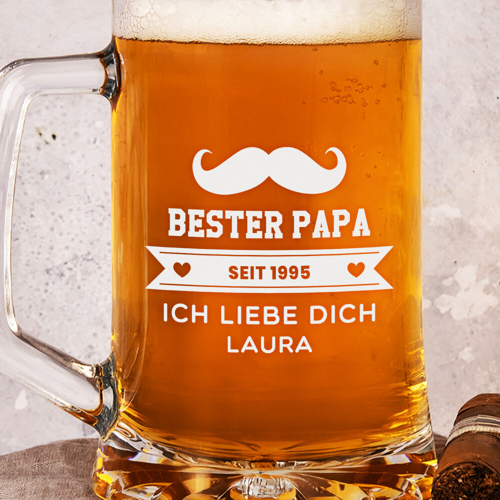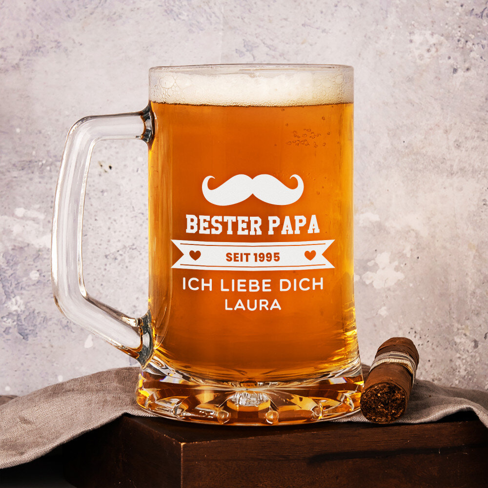 Suchen Sie nach einem praktischen Geschenk für Ihren Papa? Überraschen Sie ihn mit unserem personalisierten Bierkrug! Von jetzt an kann Ihr Papa das Hopfengetränk aus einem einzigartigen Krug mit Ihren eigenen Glückwünschen genießen!