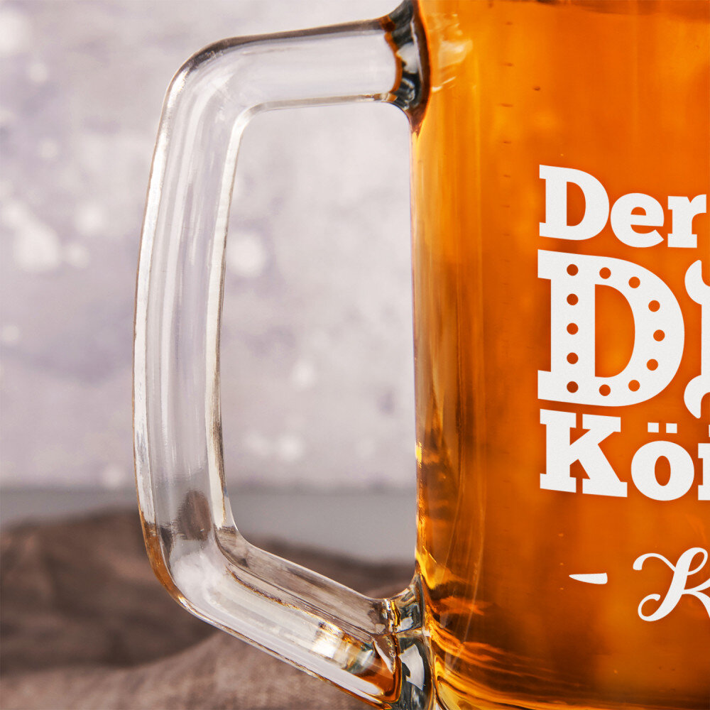 Der Bierkrug aus hochwertigem Glas ist äußerst langlebig und anlauf- und kratzfest. Es verfügt über einen bequemen Griff, der Komfort und Sicherheit bei der Verwendung gewährleistet. Eine personalisierte Gravur wird auf einer perfekt glatten Oberfläche angebracht. Ein Bierkrug ist ein tolles Geschenk für einen Bierliebhaber. Es ist ein tolles Geschenk für viele Anlässe!