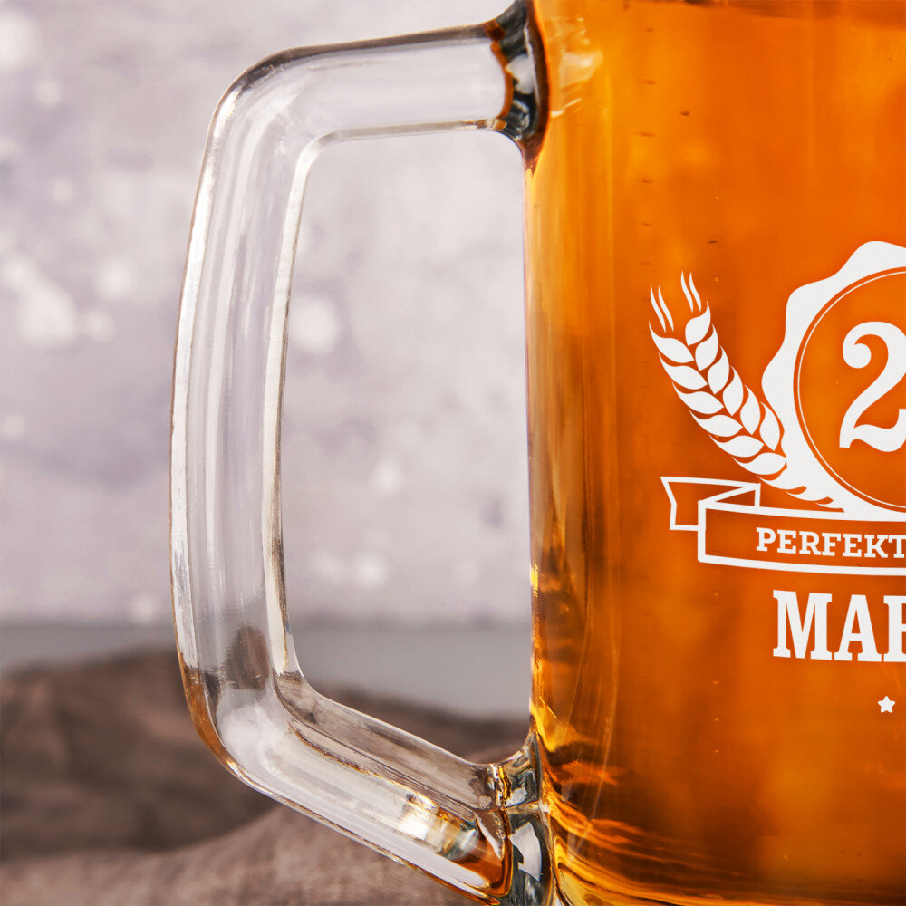 Der Bierkrug aus hochwertigem Glas ist äußerst langlebig und anlauf- und kratzfest. Es verfügt über einen bequemen Griff, der Komfort und Sicherheit bei der Verwendung gewährleistet. Eine personalisierte Gravur wird auf einer perfekt glatten Oberfläche angebracht. Ein Bierkrug ist ein tolles Geschenk für einen Bierliebhaber. Es ist ein tolles Geschenk für viele Anlässe!