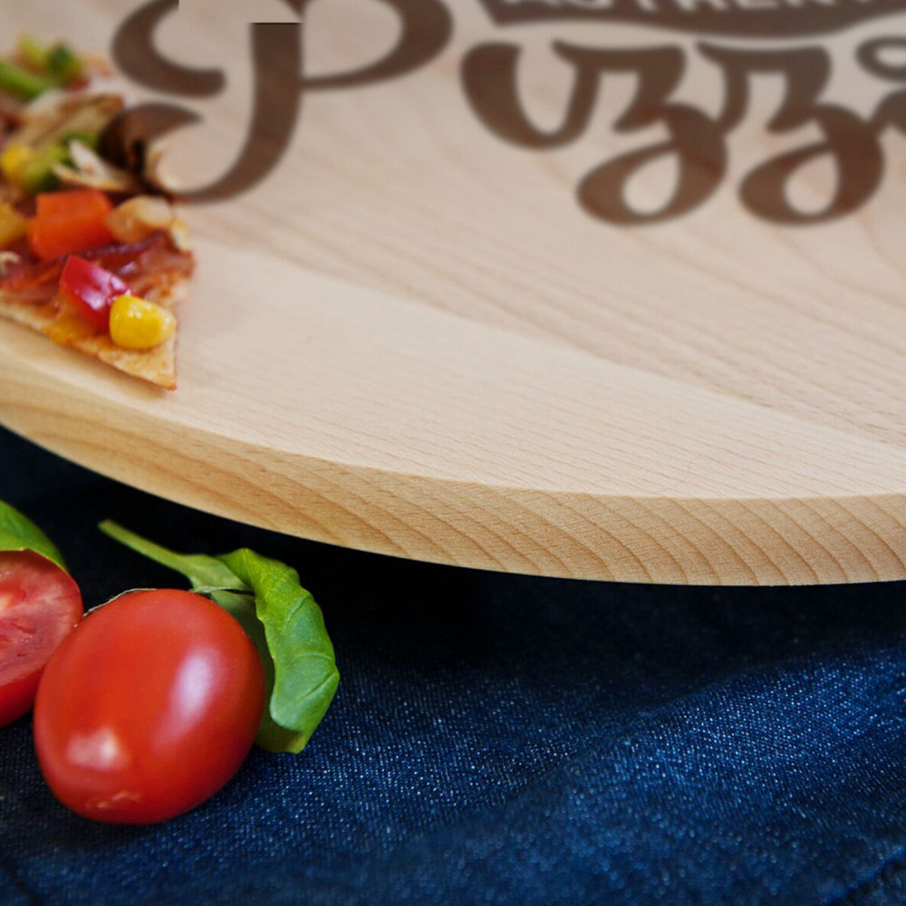 Hausgemachte Pizza ist einfach am besten! Kennen Sie vielleicht eine Person, die erfolgreich ihre eigene Pizzeria eröffnen könnte? In so einem Restaurant wäre unser Drehbrett beim Servieren der leckeren Speisen einfach unerlässlich.