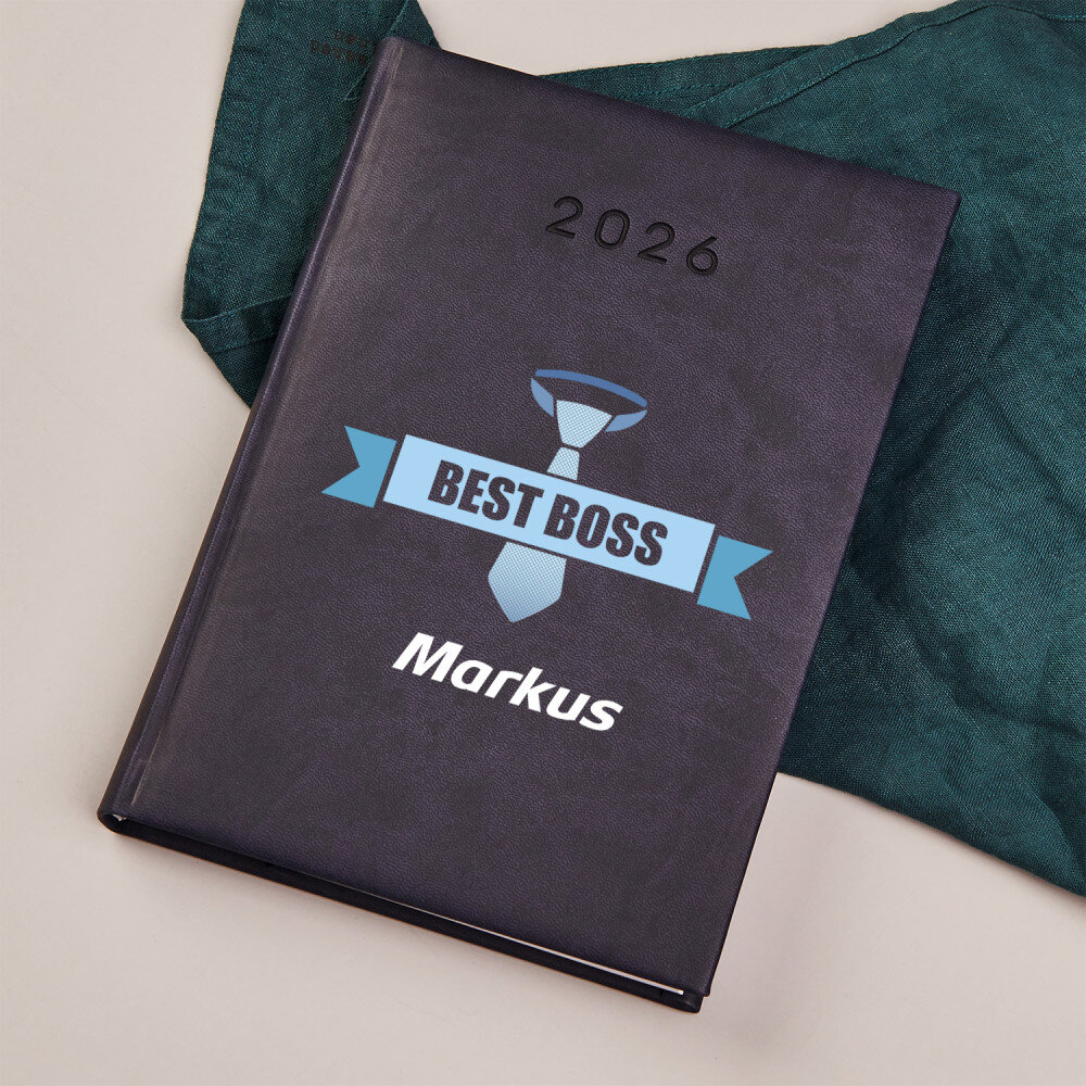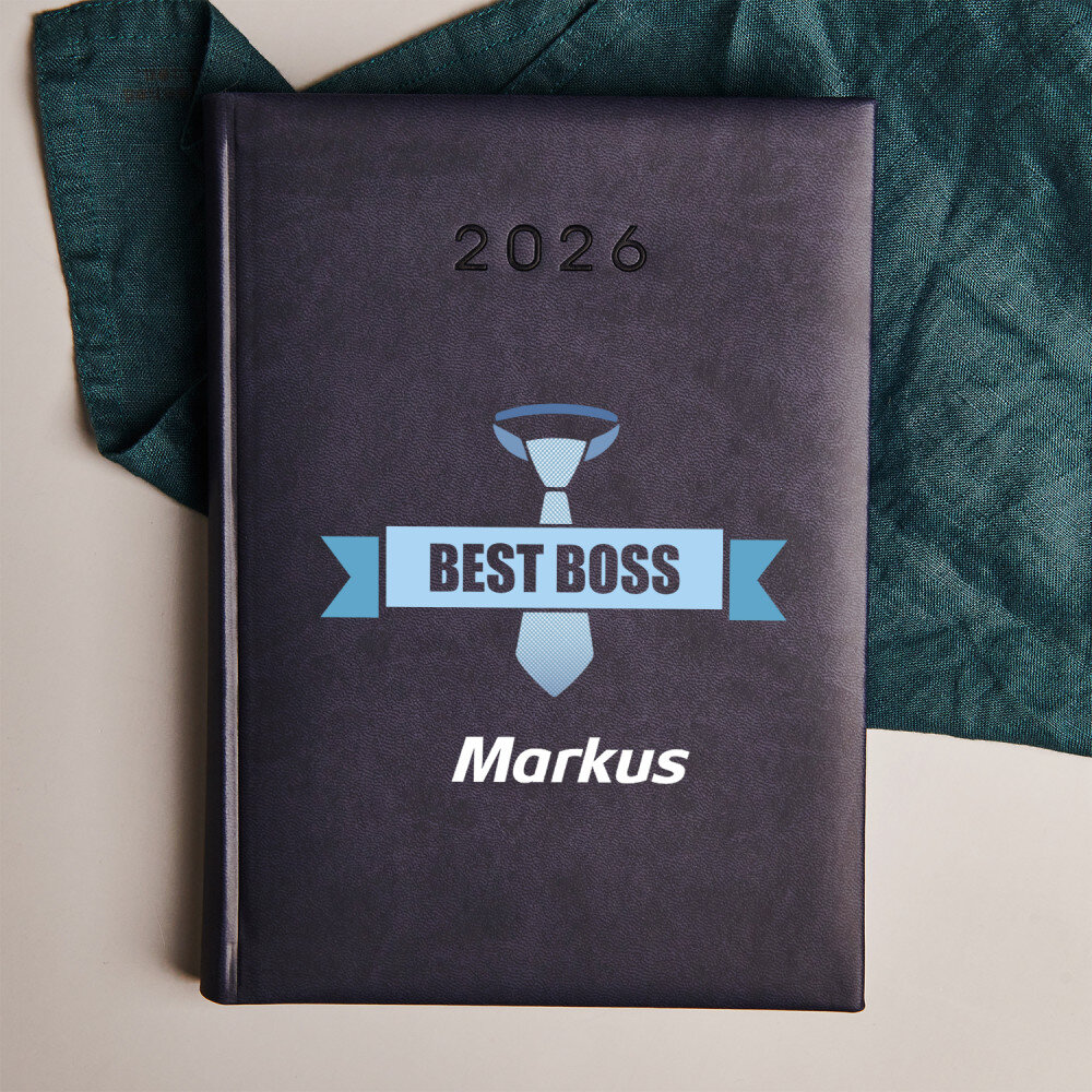 Buchkalender im DIN-Format A5 mit hochwertiger Gravur. Der Kalender wird mit weichem Material mit Besatz am Rande eingebunden.Zur Verfügung stehen zwei Farbvarianten: dunkelblau und lila.