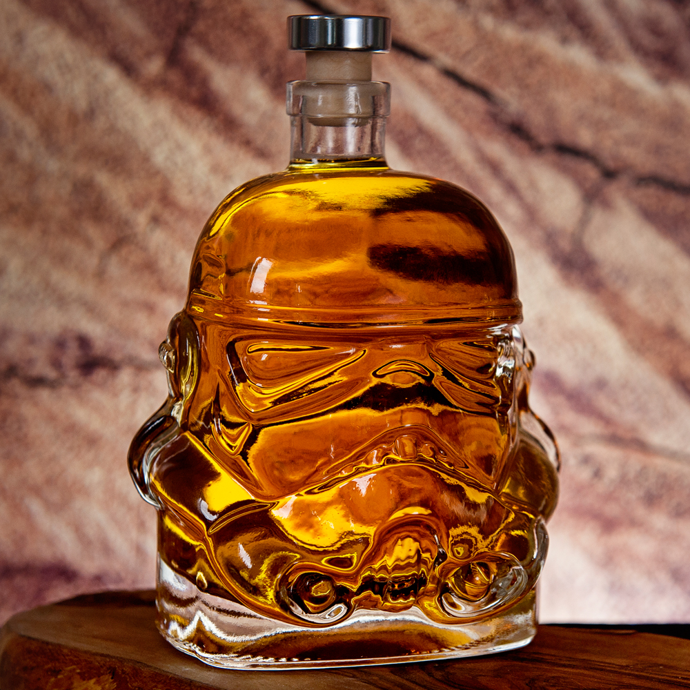 Die imperiale Karaffe wird dem darin enthaltenen Alkohol noch mehr Kraft liefern und Ihre Geschmacksknospen werden wie der Todesstern explodieren. Der Sturmtruppler-Helm aus solidem Glas wird Ihr bester Begleiter bei jedem Alkohol-Krieg und jeder Drink-Schlacht sein. Der Stormtrooper ist kein übliches Gefäß. Er ist ein echter Zerstörer unter allen Karaffen. Befüllen Sie ihn mit Ihrem Lieblingsgetränk und genießen Sie den galaktischen Geschmack.
