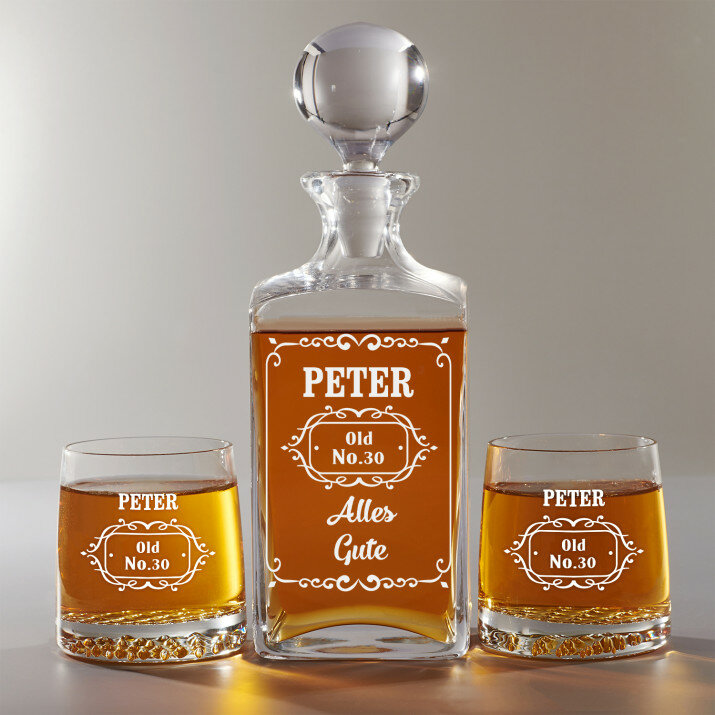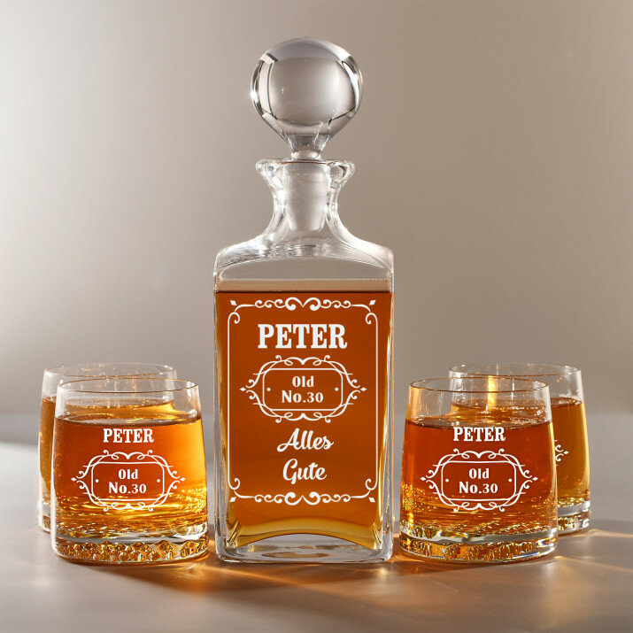 Set mit gravierter Karaffe und Whisky-Gläsern in vier Optionenerhältlich:Karaffe + 1 Glas