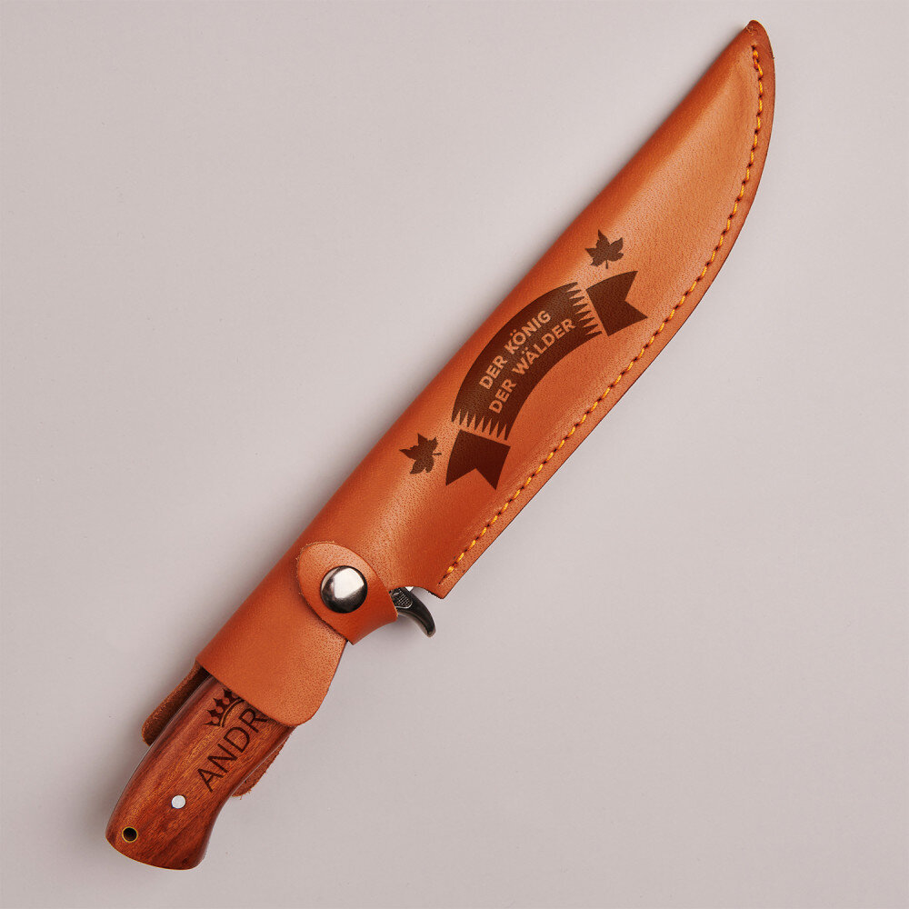 Das Messer mit Gravur ist ein großartiges Geschenk für den Jäger und wird auf jeder Jagd gut gebraucht. Auch die Liebhaber von Pilze sammeln und Angeln werden sich über ein solches Geschenk freuen. Das Jagdmesser ist auch bei einem Campingausflug mit der Familie sehr nützlich.