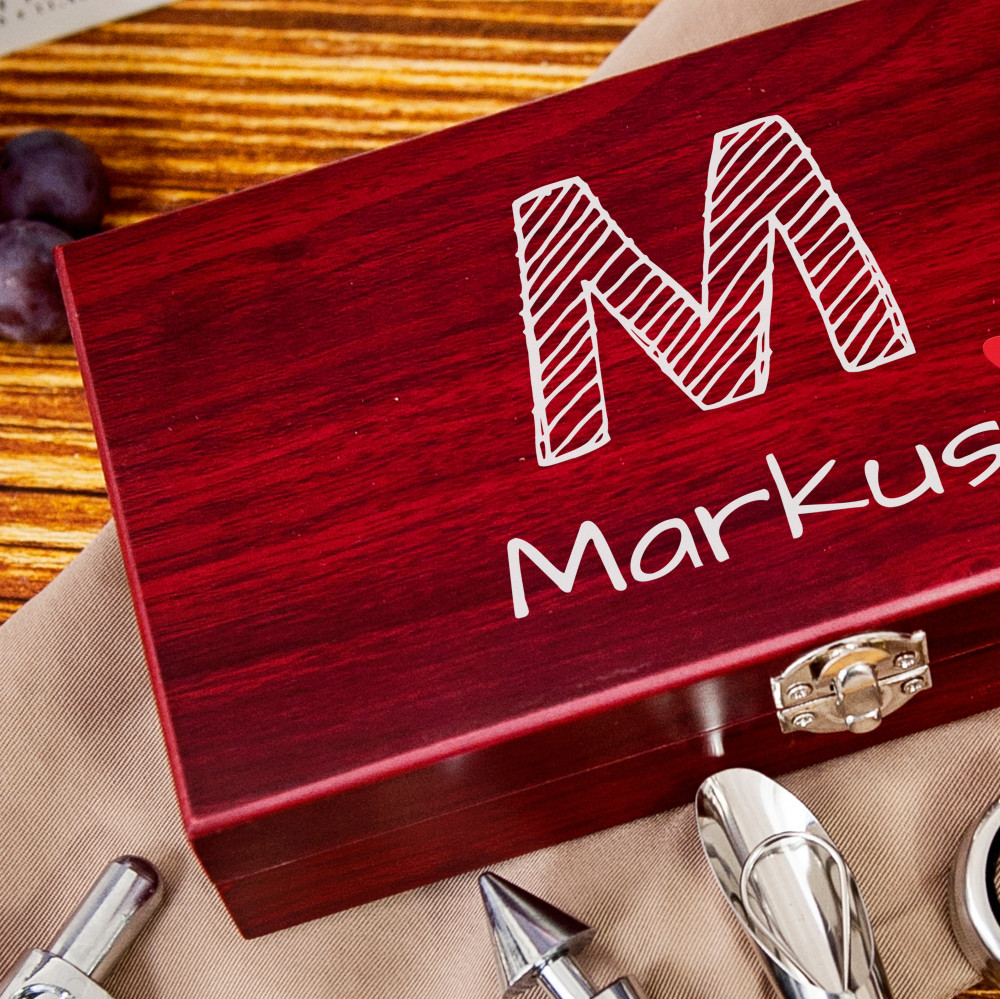 Alle bringen eine Flasche Wein als Geburtstagsgeschenk... Heben Sie sich von der Masse hervor und schenken Sie dieses Weinset! Mit dem eingravierten Namen der beschenkten Person wird sich das Geschenk herrlich präsentieren!