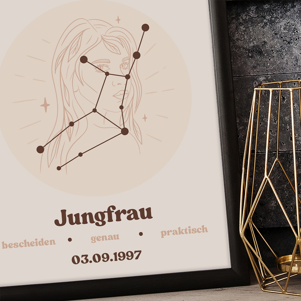 Dieser Rahmen mit dem Sternzeichen Jungfrau ist eine elegante Ergänzung für das Interieur. Das Design ist subtil, und die Verarbeitungsqualität ist beeindruckend.