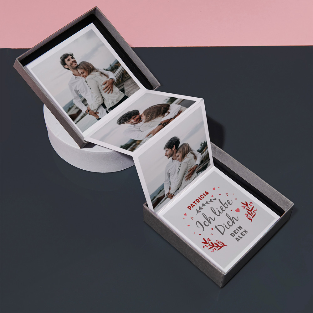 Das Harmonika-Fotoset 'Ich liebe dich' ist ein besonderes Geschenk. Die schöne Personalisierung und die Sorgfalt bei der Herstellung machen einen bleibenden Eindruck.