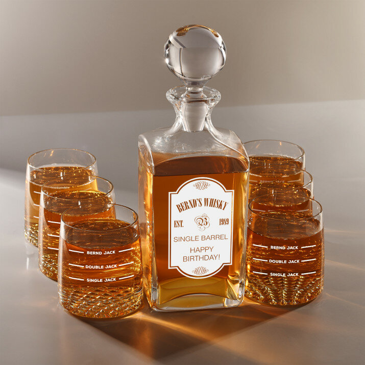 Set mit gravierter Karaffe und Whisky-Gläsern in vier Optionenerhältlich:Karaffe + 1 Glas