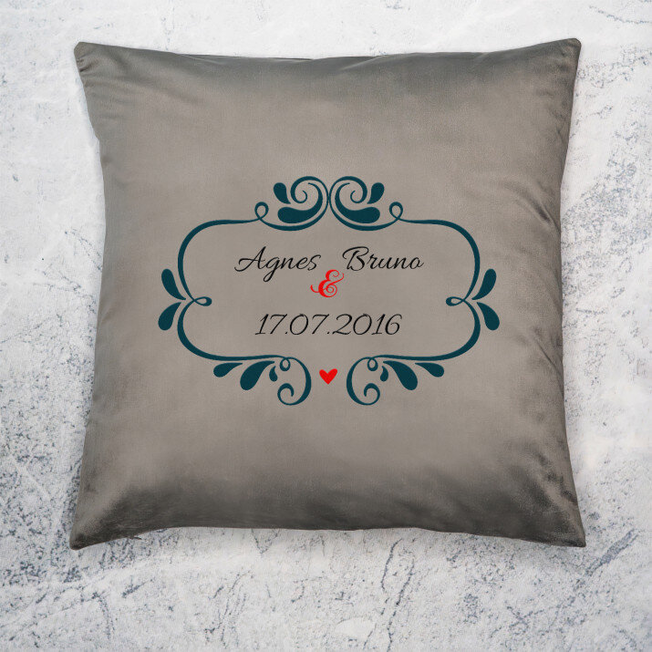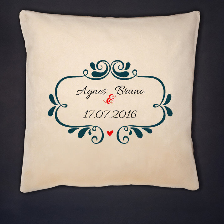 Das dekorative Kissen mit Namen und Datum ist eine wunderschöne Dekoration. Die Personalisierung und die Qualität der Ausführung hinterlassen einen Eindruck.
