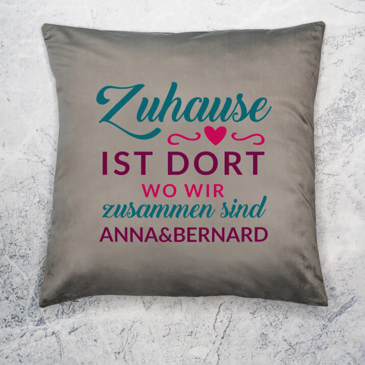 Ein Kissen mit der Aufschrift „Home is where we are together“ ist eine schöne Ergänzung für unsere Inneneinrichtung. Verleiht Wärme und Gemütlichkeit.