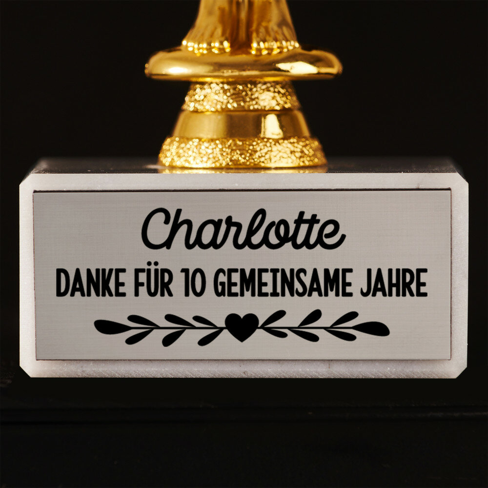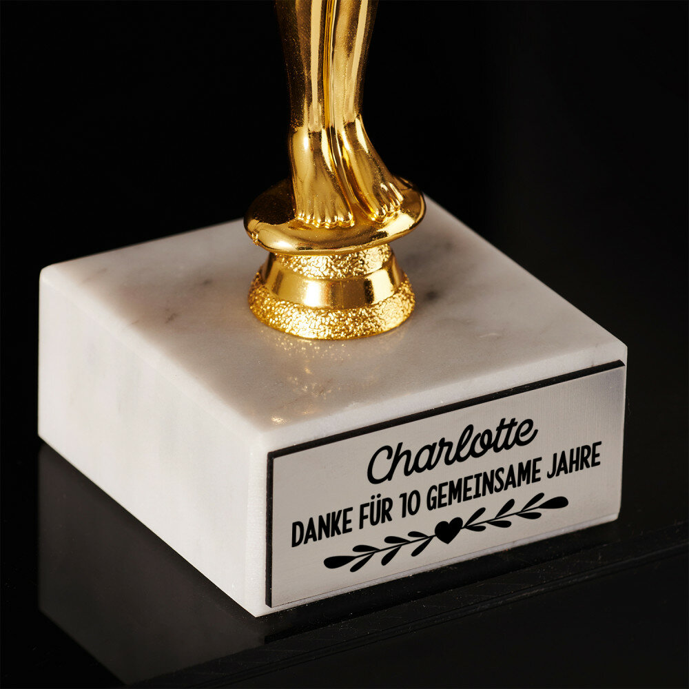 Eine elegante Statue, die mit viel Liebe zum Detail für besondere Anlässe und besondere Menschen kreiert wurde. Dank der präzisen Lasergravur können Sie diese Statue personalisieren und ihr einen einzigartigen Charakter verleihen, der einem bestimmten Ereignis entspricht. Sie ist die perfekte Art, Leistungen zu würdigen, Engagement anzuerkennen oder wichtige Daten und Ereignisse zu feiern. Die Statue wird mit Sicherheit zu einem einzigartigen Andenken, das die besonderen Momente für immer in Ihrer Erinnerung behält. Egal zu welchem Anlass, die Statue wird der beschenkten Person das Gefühl geben, etwas Besonderes zu sein.Zusätzliche Informationen: