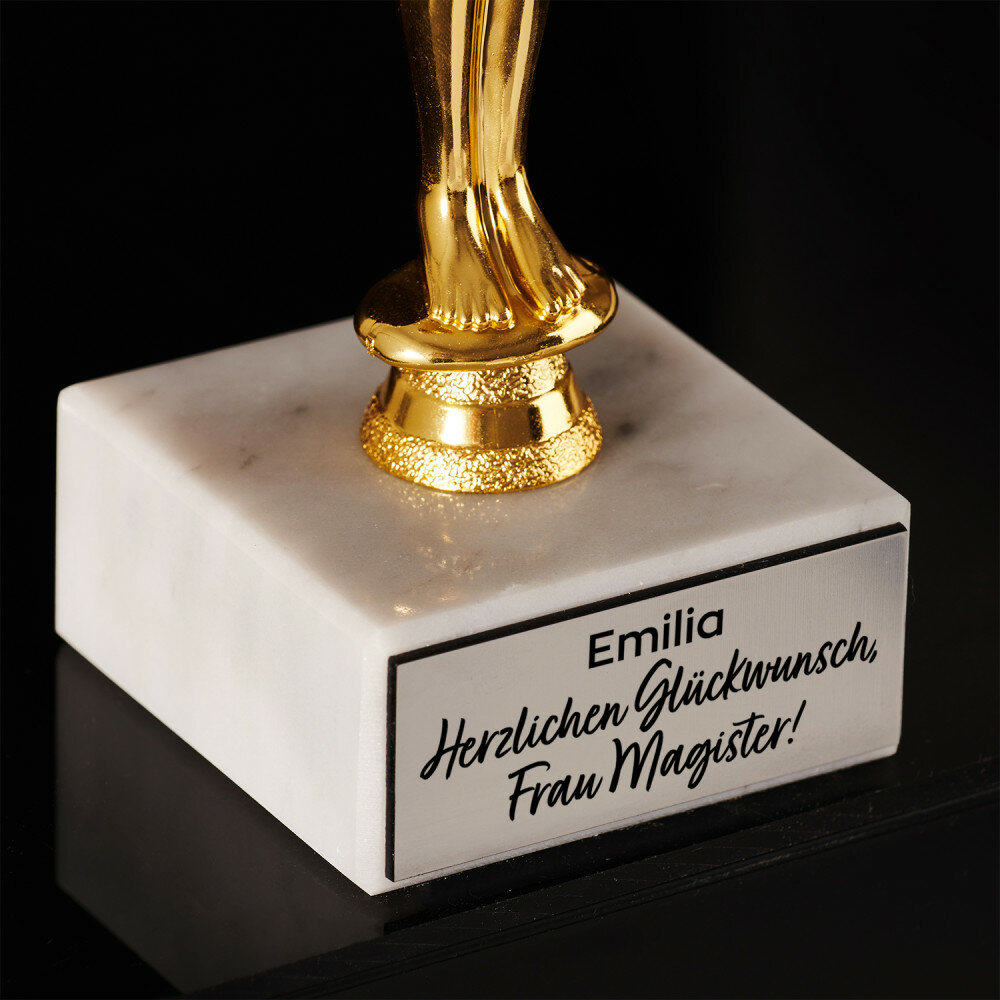 Eine elegante Statue, die mit viel Liebe zum Detail für besondere Anlässe und besondere Menschen kreiert wurde. Dank der präzisen Lasergravur können Sie diese Statue personalisieren und ihr einen einzigartigen Charakter verleihen, der einem bestimmten Ereignis entspricht. Sie ist die perfekte Art, Leistungen zu würdigen, Engagement anzuerkennen oder wichtige Daten und Ereignisse zu feiern. Die Statue wird mit Sicherheit zu einem einzigartigen Andenken, das die besonderen Momente für immer in Ihrer Erinnerung behält. Egal zu welchem Anlass, die Statue wird der beschenkten Person das Gefühl geben, etwas Besonderes zu sein.Zusätzliche Informationen: