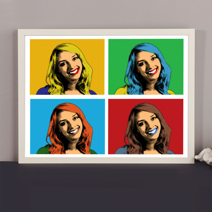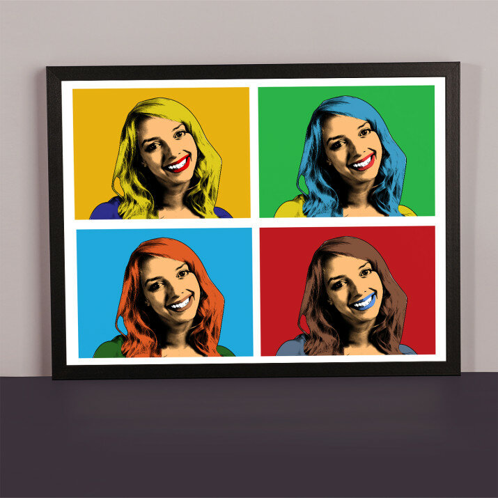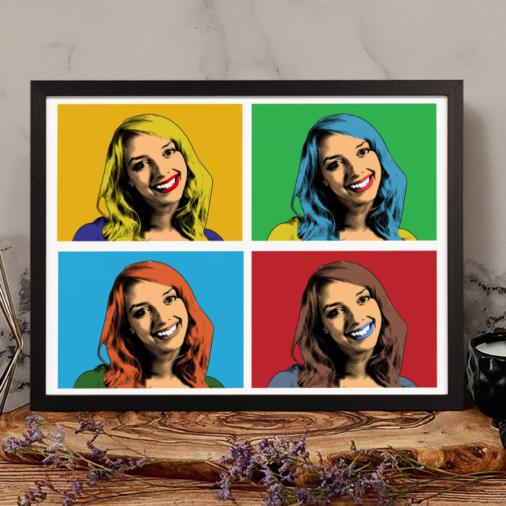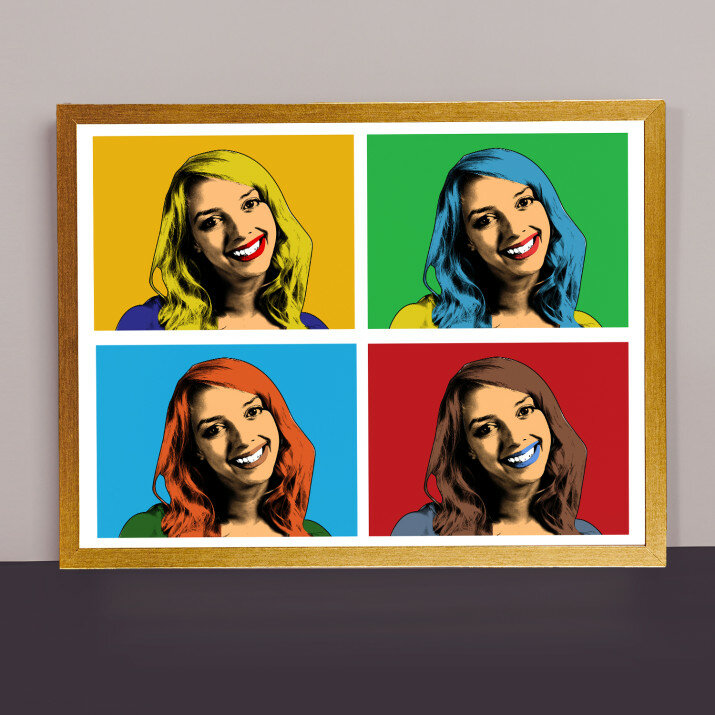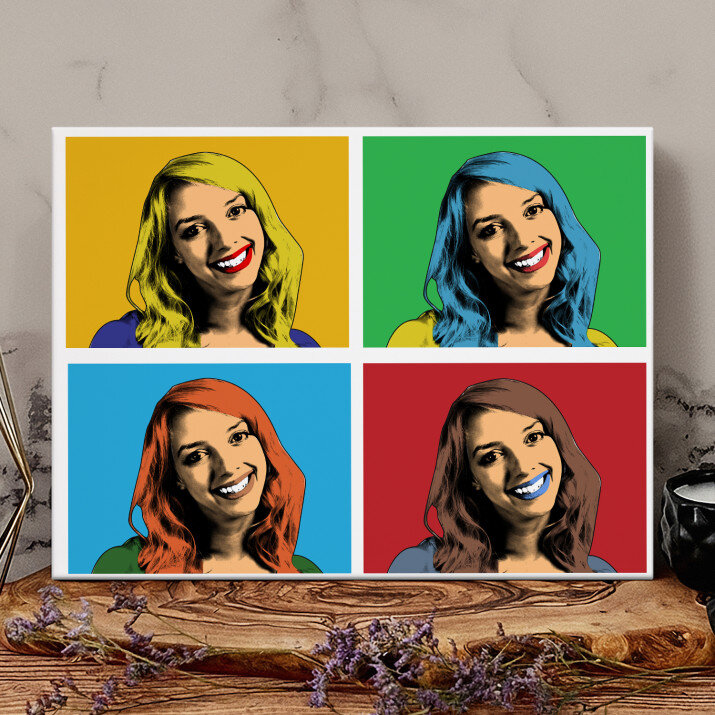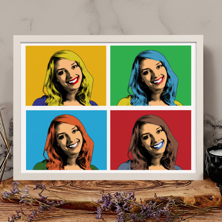 Das Porträt im Warhol-Stil stellt die berühmte Verbindung eines Fotos in unterschiedlichen farblichen Einstellungen dar. Ihr Foto gewinnt einen neuen, starken und einzigartigen Charakter.