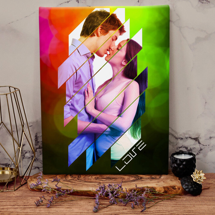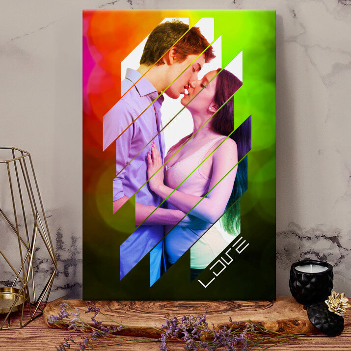 Der Designate-Stil zeichnet sich dadurch aus, dass das Foto in diesem Stil in mehrere bunte und dynamische Elemente geteilt wird.