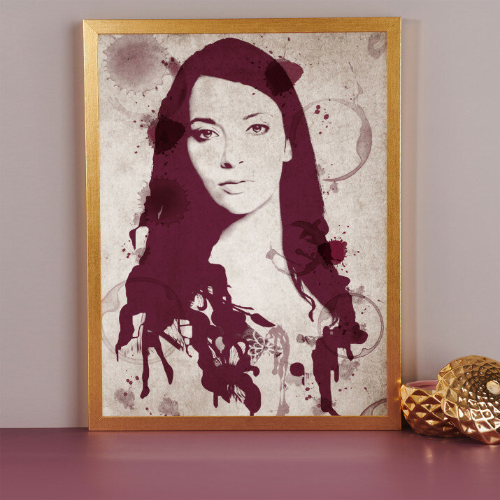 Das Foto im Vino-Stil wurde durch die Farbgebung des Rotweins und die Verbindung von Flecken und Klecksen inspiriert. Dieser fulminante Stil wird bestimmt die Aufmerksamkeit von jedem fesseln.