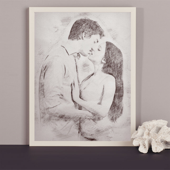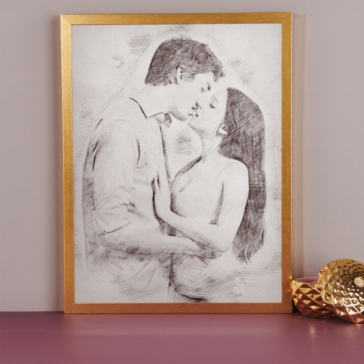 Der Skizze-Stil, der einem mit einem Bleistift skizzierten Gemälde ähnelt, begeistert durch seine klassische Einfachheit und die ausdrucksstarke Linie des Künstlers. Diese einzigartige Kombination schafft eine völlig einzigartige Arbeit.STILVOLLES LEINWANDBILD