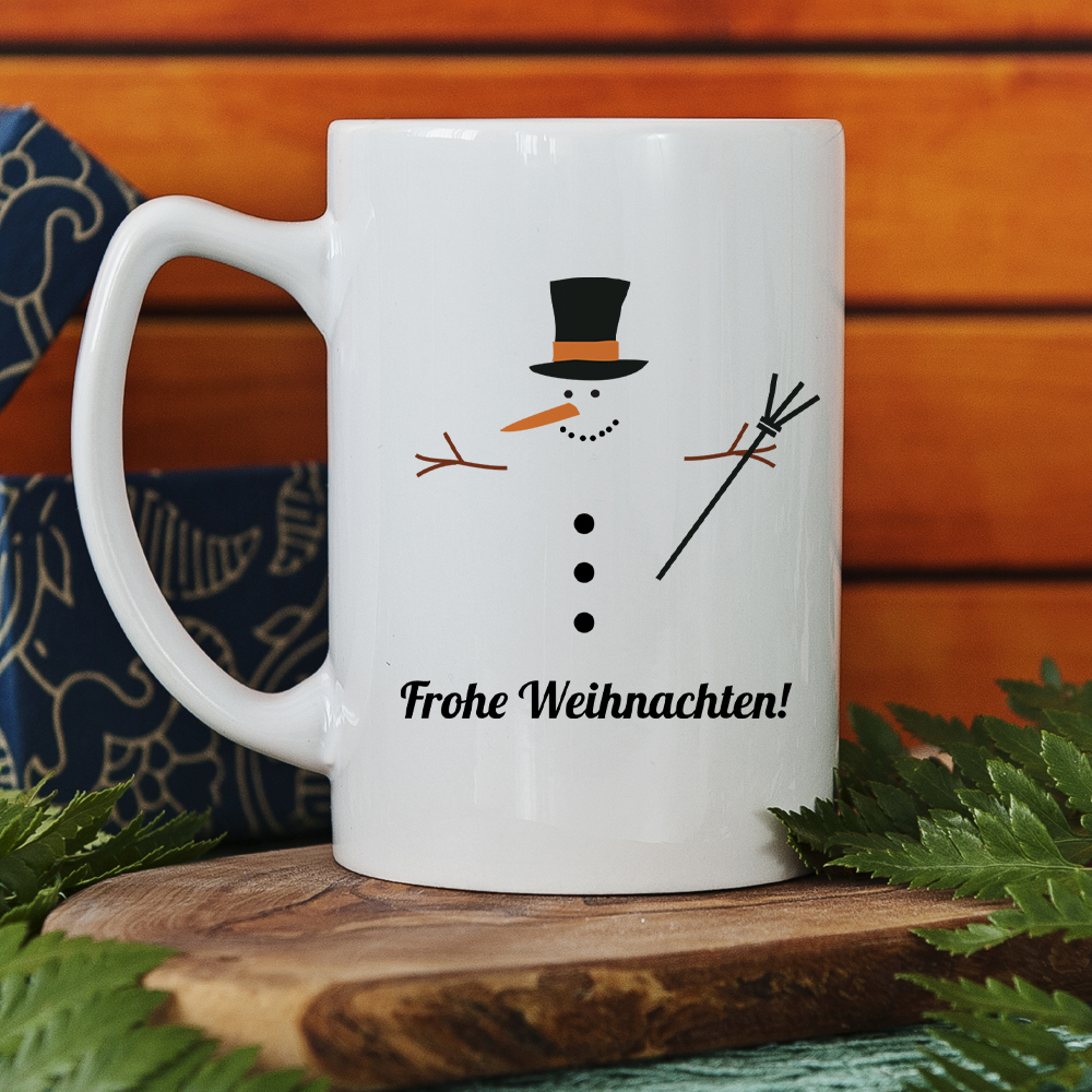 FROHE WEIHNACHTEN SCHNEEMANN - PERSONALISIERTE TASSE