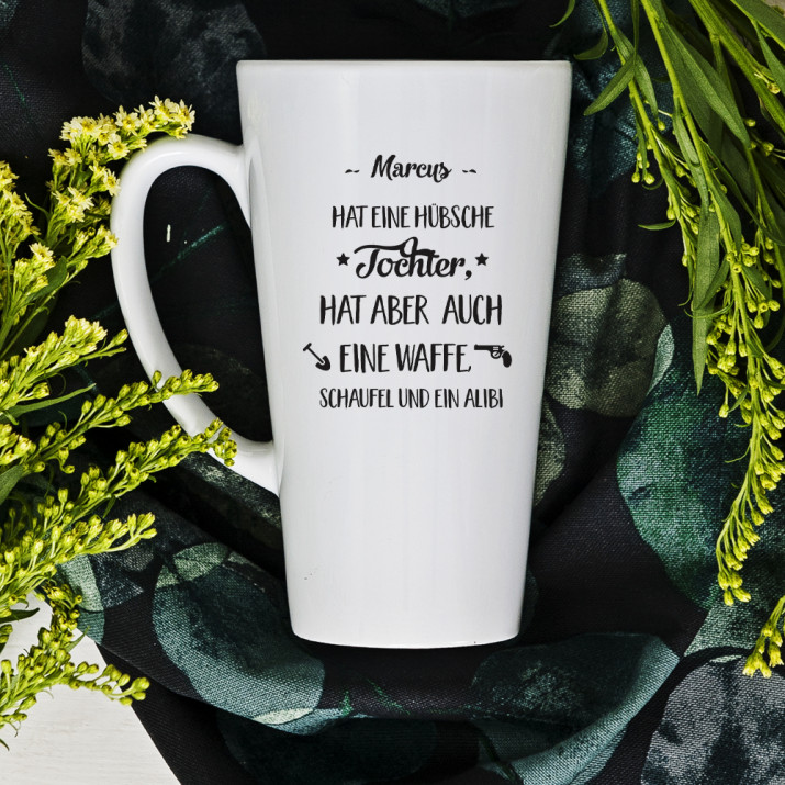 ein wahnsinniges Geschenk für den Vater. Diese personalisierte Tasse wird jeden Vater begeistern, besonders wenn Sie Ihre schöne Tocher sind. Er sollte darüber nachdenken, was Sie ihm auf diese Art und Weise sagen wollten!