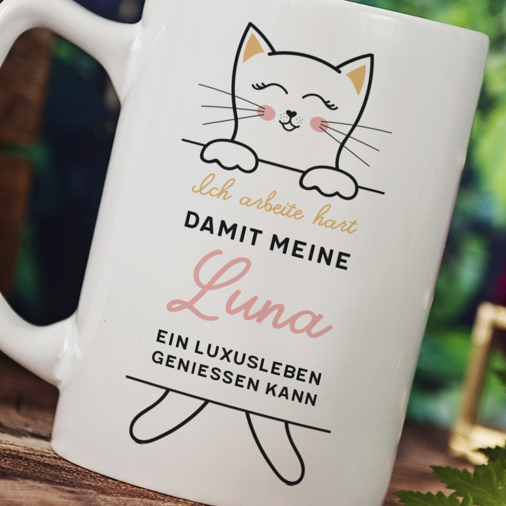 Die Personalisierung dauert nur einen Augenblick. Füllen Sie die Felder in der Sektion "Personalisierung" aus und klicken Sie "in den Warenkorb" - wir schaffen Ihre einzigartige Tasse für Sie.