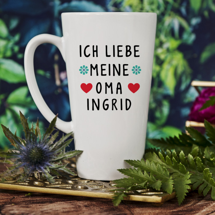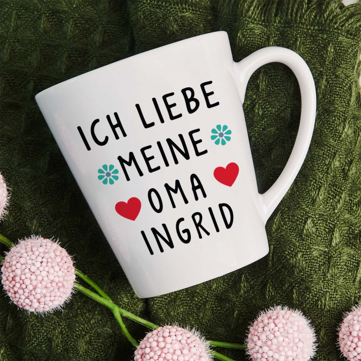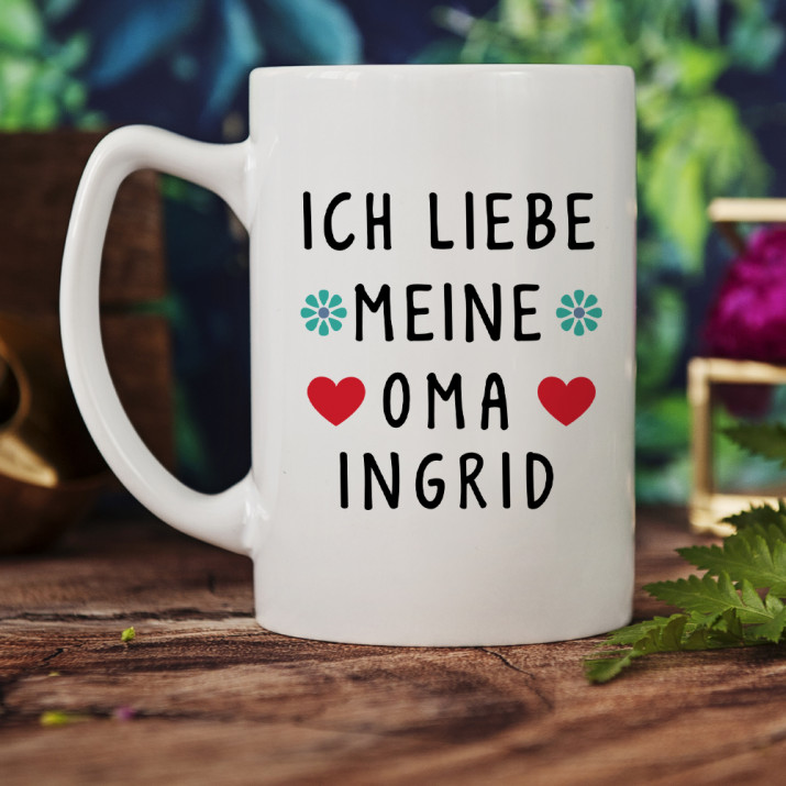 originelles Geschenk für die Oma, das Ihre Liebe zum Ausdruck bringt. Tee aus diesem Becher wird bestimmt anders schmecken, als dieser aus einem üblichen Glas. Die personalisierte Tasse mit der Aufschrift "Ich liebe meine Oma" ist ein wunderschönes Andenken. Von jetzt an wird Ihre Oma ihren täglichen Tee nur aus dieser Tasse trinken!