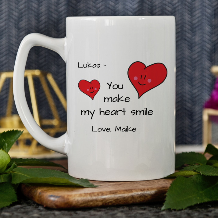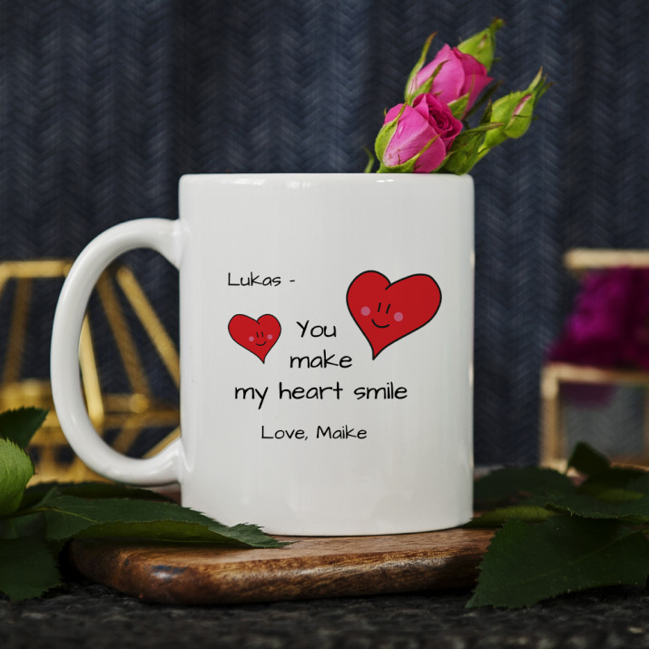 YOU MAKE MY HEART SMILE - PERSONALISIERTE TASSE