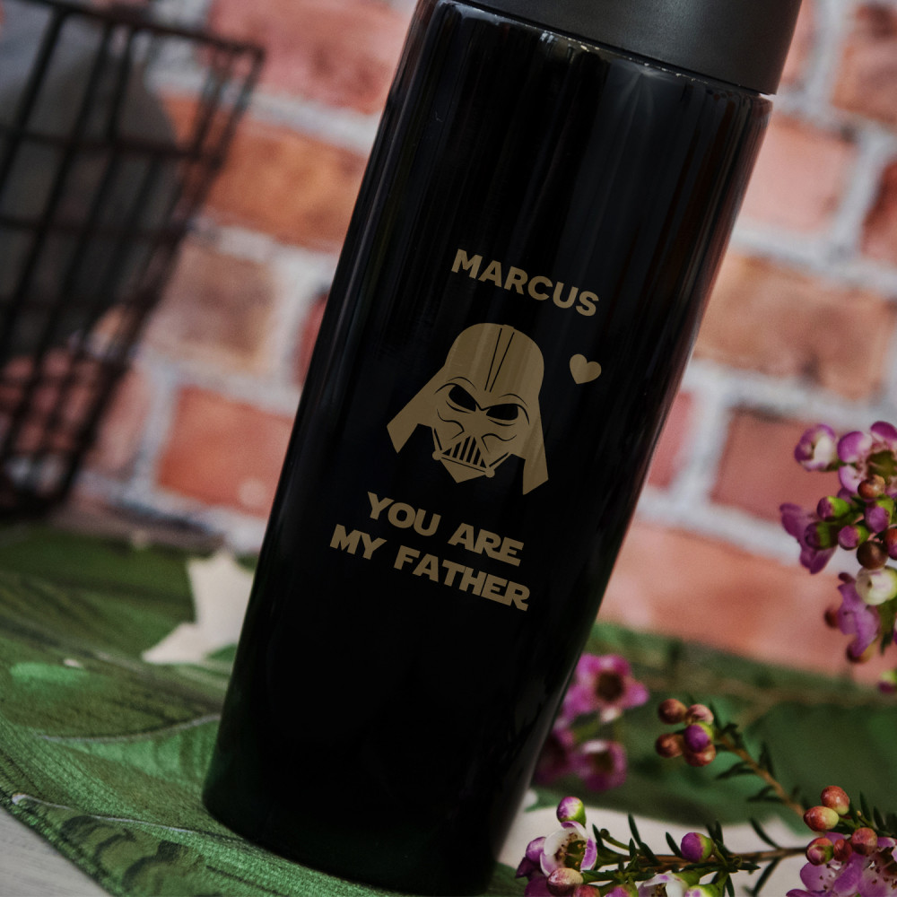 Ein gravierter Thermobecher mit Wunschnamen für alle Star-Wars-Fans. Möge der Kaffee mit Dir sein!