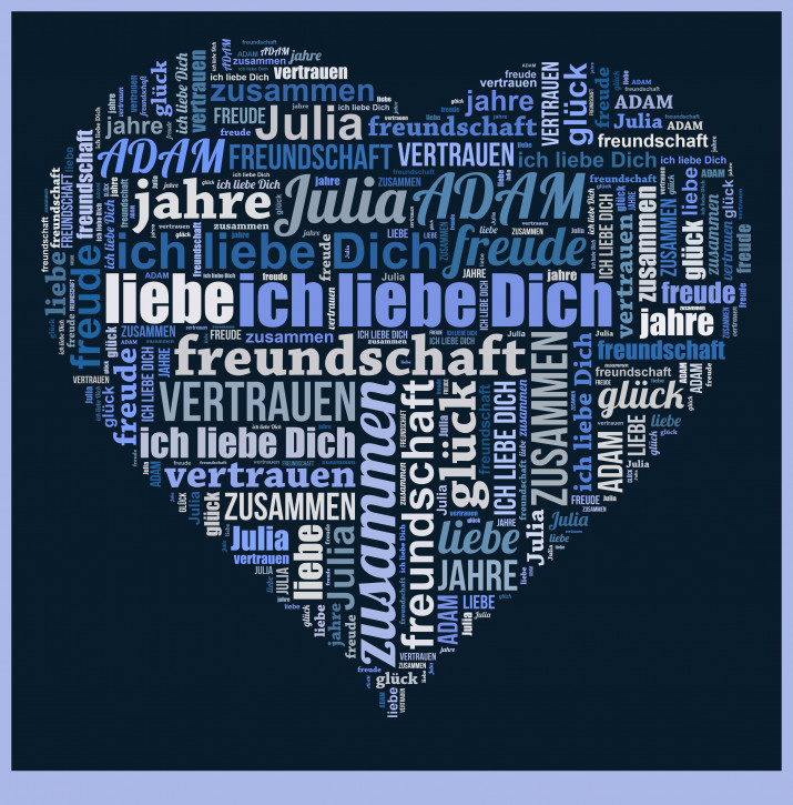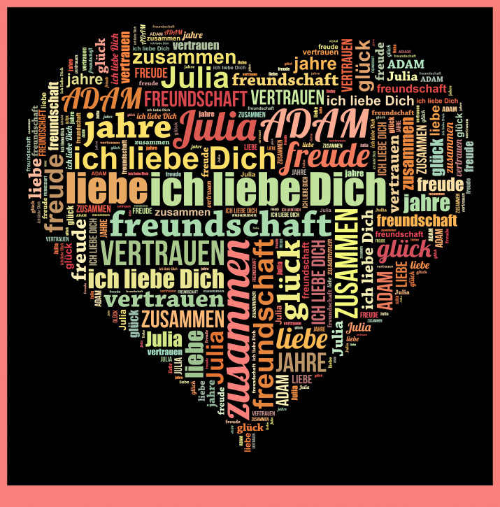 Das Wortbild ist ein außergewöhnliches Leinwandbild aus Ihren Worten. Sie können damit einer Ihnen nahestehenden Person Wünsche oder eine romantische Nachricht auf eine originelle Weise übermitteln. Indem Sie das Bild personalisieren, schaffen Sie ein einzigartiges Geschenk.Personalisierung