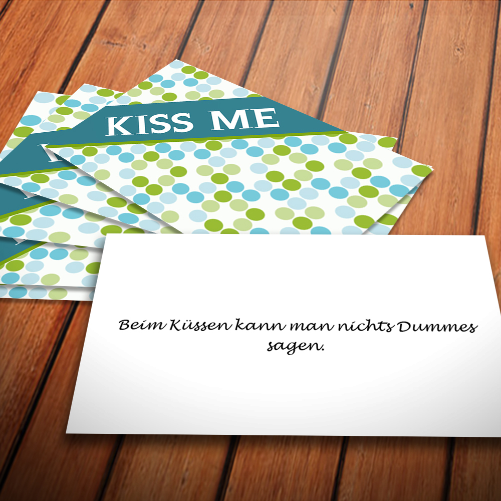 Das Wunschglas "Küssen lohnt sich" enthält 31 personalisierte Zettel. Ein paar Beispiele:- Küssen ist eine der Freizeitaktivitäten, die keine Ausrüstung erfordern.