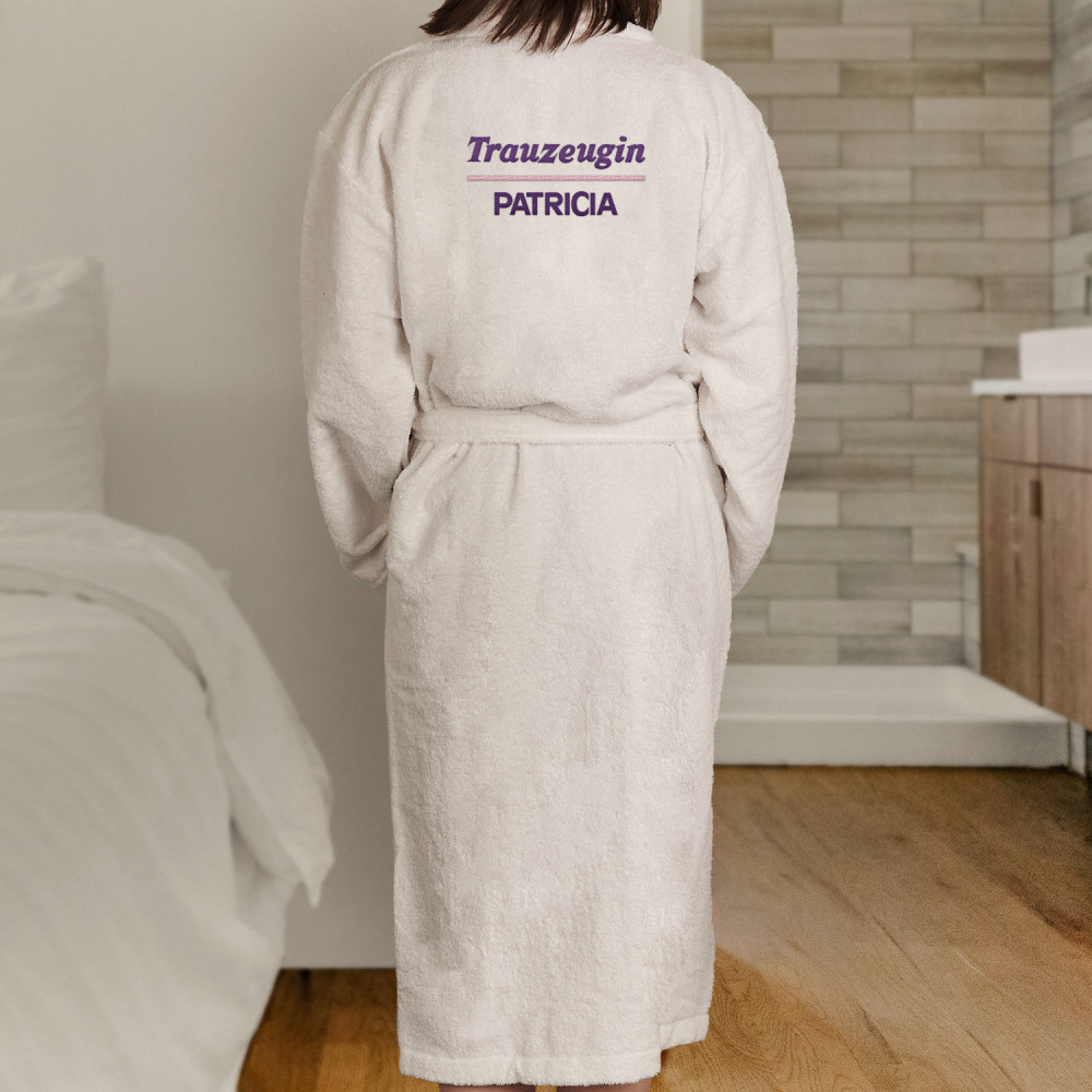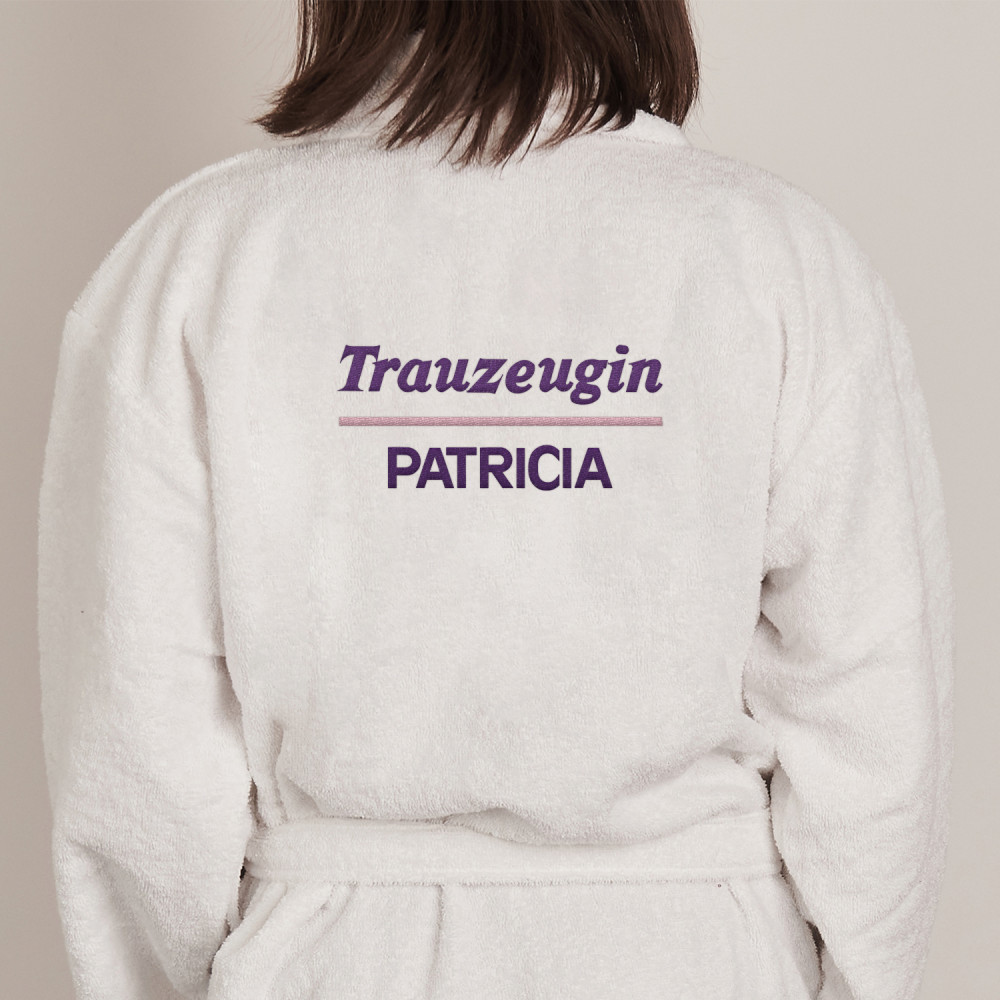 Sie können zwischen zwei Stellen für die Stickerei wählen - auf der Vorderseite oder auf der Rückseite . Bitte wählen Sie eine der Optionen im entsprechenden Personalisierungsfeld aus.Ein vielseitiger Bademantel in Weiß, aus 100% Frottee-Baumwolle. Bequem, hübsch, weich - bietet den perfekten Komfort, wenn alle Sorgen des Tages vergessen sind und es Zeit ist, sich zu entspannen. Es wärmt auch einen schläfrigen Körper gleich nach dem Aufwachen. Der Bademantel ist mit einer personalisierten Stickerei verziert, die schön aussieht und das Produkt zu einem besonderen Geschenk macht!