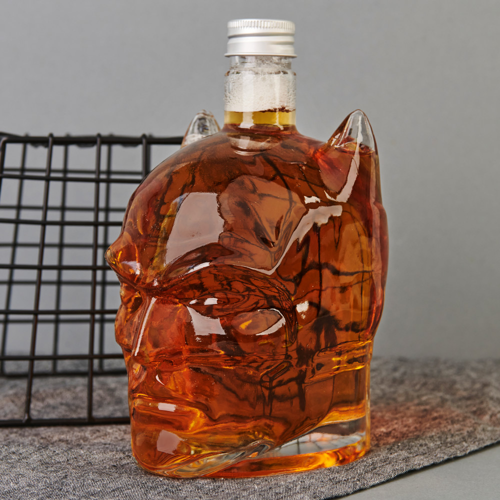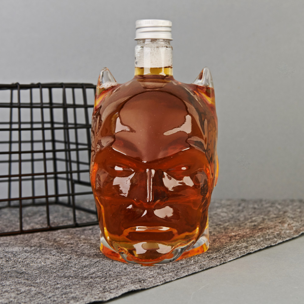 Solch eine Karaffe ist ein wahrer Schatz. Sie wird eine Sensation während eines Abends mit Freunden machen, auf jeder Party mit Freunden können Sie auch seine brillante Form in Einsamkeit bewundern. Gießen Sie, was Sie wollen, Whisky, Tinktur, Wein und sogar Saft, und Sie werden das Gesicht eines Fledermausmannes auf magische Weise sehen.AUFÜHRUNG