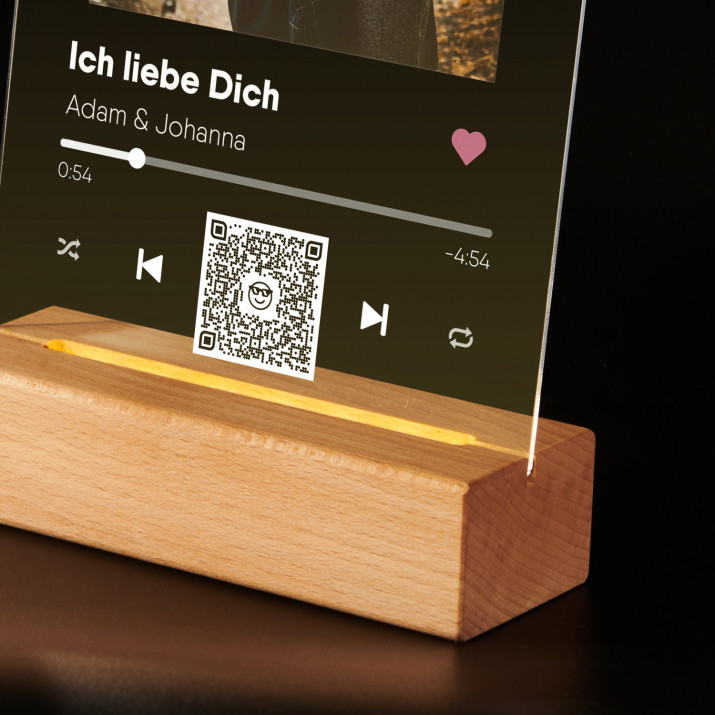 Wyjątkowy druk na szkle akrylowym z podstawą LED 'Twoja piosenka na Spotify' to nowoczesny sposób na prezent. Bardzo efektowny i osobisty.