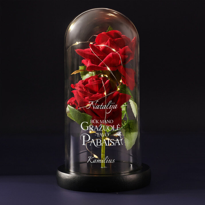 Eine ewige Kristallrose unter einer Glaskuppel ist ein einzigartiges Geschenk, das zu vielen Anlässen verschenkt werden kann. Ein schönes und nachhaltiges Geschenk, das über viele Jahre hinweg ein perfektes Andenken sein wird! Das Hauptmerkmal dieses Produkts ist die robuste, transparente Kuppel, die die zarte Rose schützt und ihr ein elegantes Aussehen verleiht. Der Ständer, aus hochwertigem Kunststoff gefertigt, sorgt für Stabilität und Haltbarkeit der gesamten Konstruktion.Außerdem schaffen die LED-Leuchten im Inneren eine romantische Atmosphäre. Die Oberfläche der Glaskuppel kann zusätzlich mit Initialen, Namen oder einer kurzen Nachricht Ihrer Wahl eingraviert werden, was das Geschenk noch spezieller macht. Die ewige Rose wird in einer Geschenkbox geliefert.