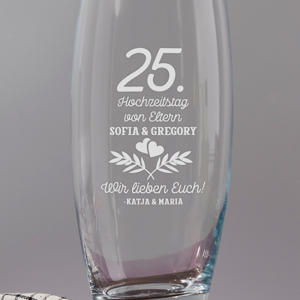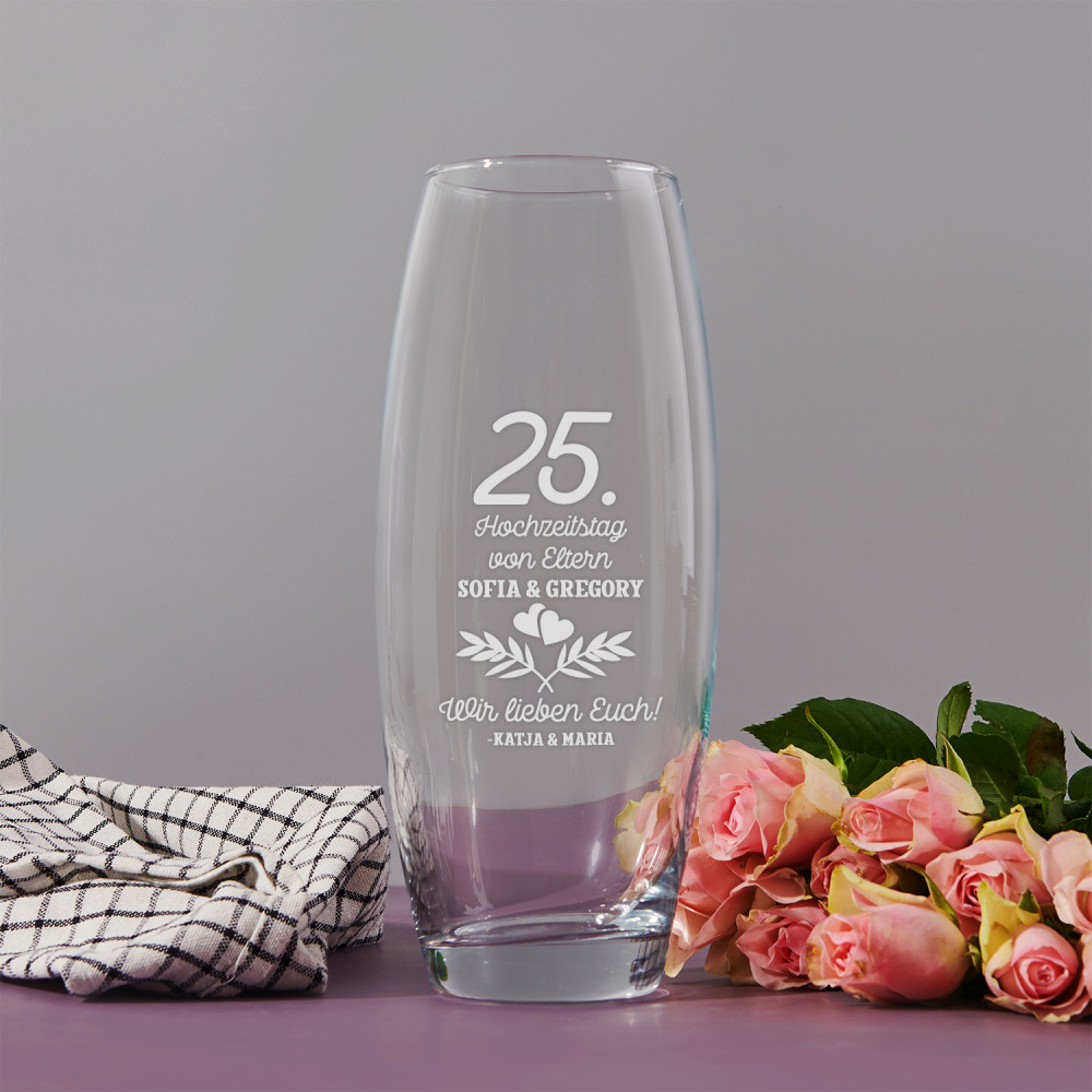 Die Glasvase wird ohne Blumen geliefert.
