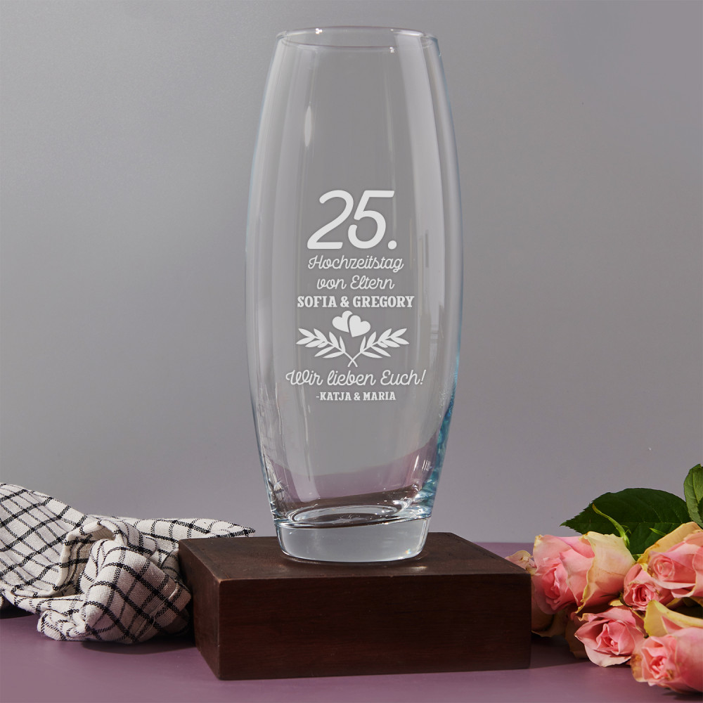 Eine stabile und elegante Vase aus dickem, transparentem Glas , solide verarbeitet. Durch die schlichte, geometrische Form passt das Produkt in jede Einrichtung und wird mit Ihrem Blumenarrangement toll aussehen. Dickes Glas und ein flacher Boden sorgen für Stabilität und Haltbarkeit des Produkts. Eine personalisierte Gravur verleiht ihm einen einzigartigen Charakter. Eine solche Vase passt in jedes Raum! Es ist ein tolles Geschenk für alle Liebhaber schöner Accessoires.Abmessungen: 20 x 10 x 10 cm