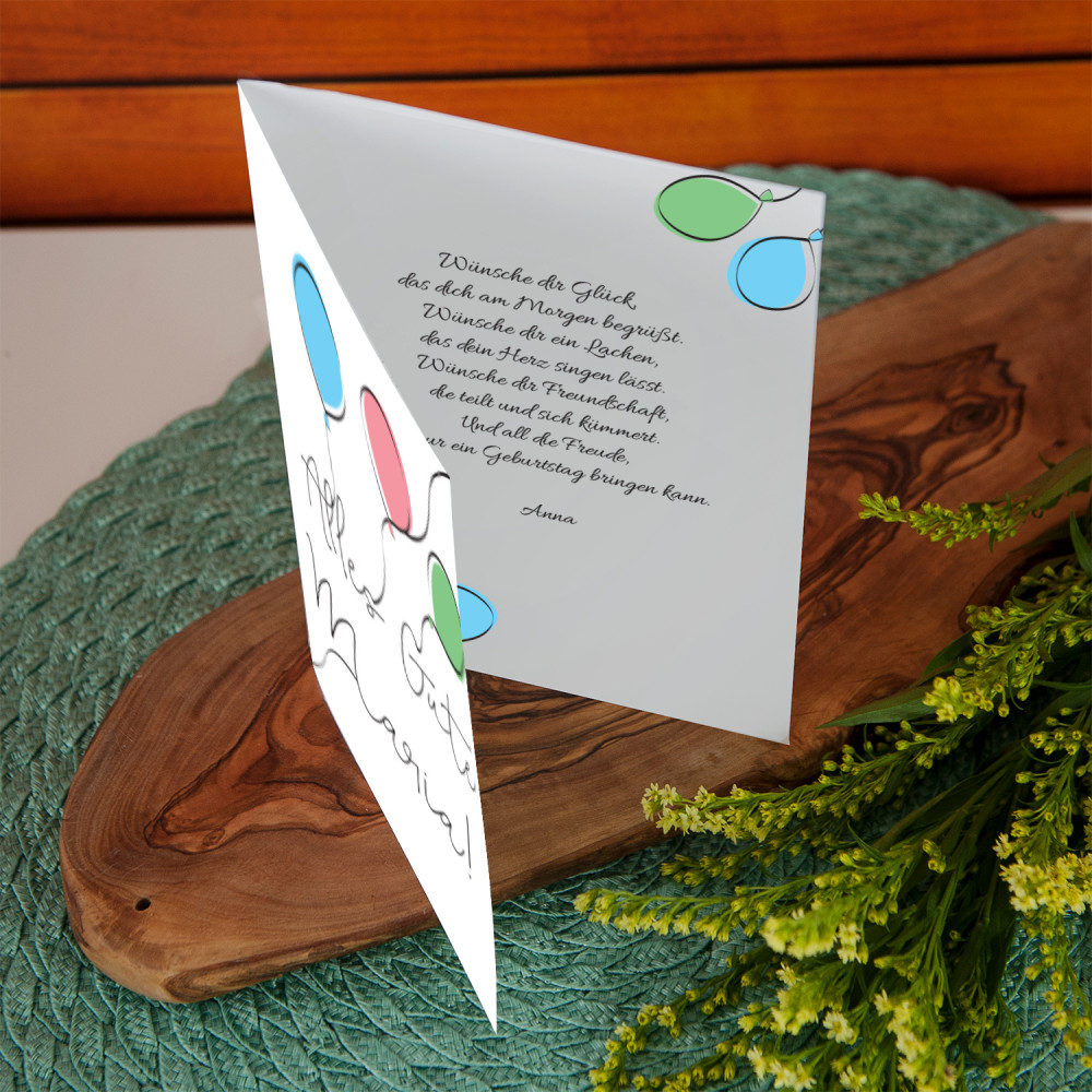 Eine einzigartige Karte mit Ihren Wünschen macht jeden Anlass noch spezieller! Solch eine Karte ist eine großartige Beilage zum Hauptgeschenk und ein Andenken, das der beschenkten Person ein Leben lang begleiten wird.AUSFÜHRUNG