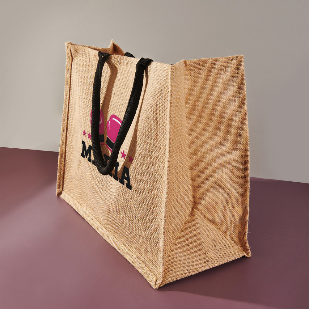 Eine hochwertige Tasche aus 100 % natürlicher Jute eignet sich perfekt zum Einkaufen. Dank seines großen Fassungsvermögens passen problemlos Bücher, Kleidung oder Kosmetika hinein. Lange, schwarze Baumwollgriffe sorgen für Komfort und Benutzerfreundlichkeit, und das klassische Design macht die Tasche zur perfekten Ergänzung für ein urbanes Outfit! Wir platzieren ein personalisiertes Muster auf der Oberfläche des Produkts, das dem Geschenk einen einzigartigen Charakter verleiht! Troba ist ein tolles Geschenk, das Sie bestimmt jeden Tag brauchen werden.Maße der Tasche: ca. 42 x 33 x 19 cm