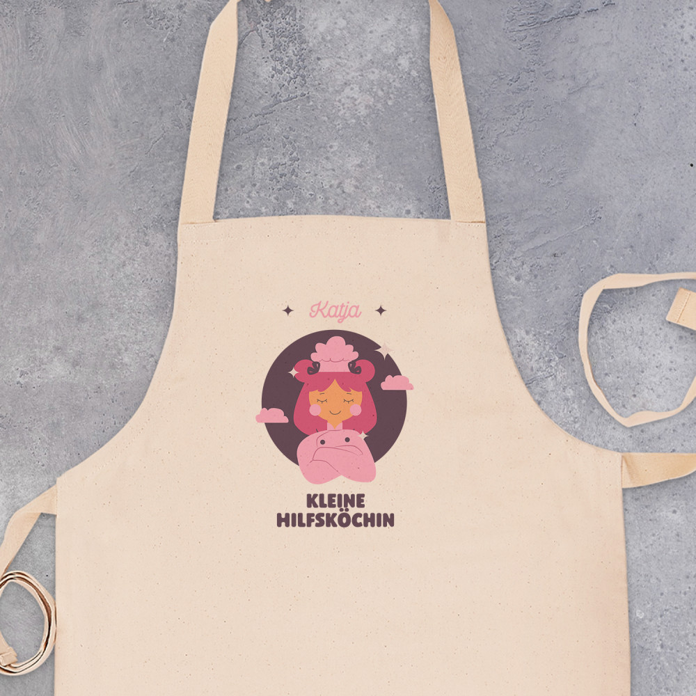 Eine Schürze für die Kleinen! Hergestellt aus hochwertiger, fair gehandelter Baumwolle mit einem Gewicht von 290 g/m², wird dieses Produkt zu einem unverzichtbaren Begleiter beim Spielen mit dem Chefkoch und ist auch für die Eltern in der Küche sehr nützlich. Diese klassische, naturfarbene Schürze verfügt über einen Gürtel aus Baumwolle mit verstellbarem Rip-Strip™-Verschluss und Fischgrät-Strickbund. Riemenlänge: 60 cm. Waschbar bis zu 40°C.