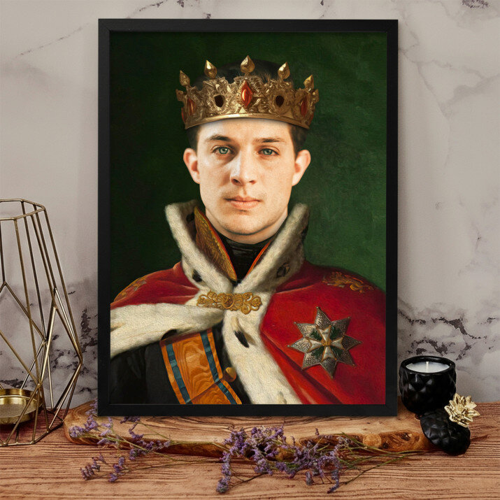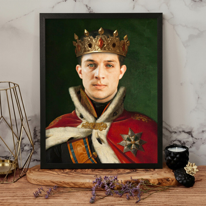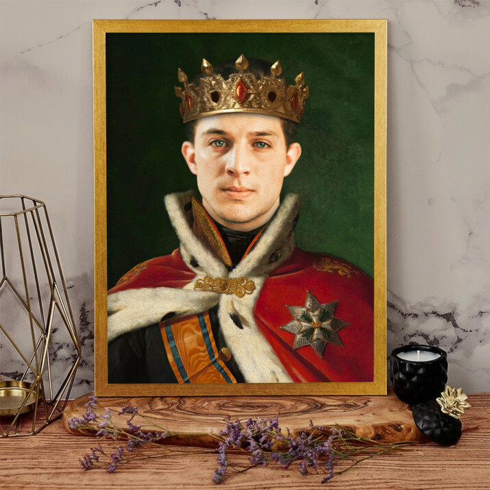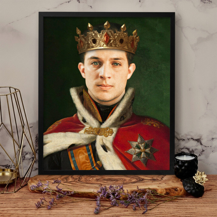 Jetzt auf dem Königsportrait sein! Das ist ein einzigartiges Bild, das wir aus Ihrem Foto erstellen. Unser Grafiker bereitet für Sie ein Projekt im von Ihnen gewählten Stil vor. Sobald Sie das Projekt bestätigen, wird das Bild auf der qualitativ hochwertigen Leinwand gedruckt und dann auf einen Rahmen aus Holz (Keilrahmen) bespannt. Solch ein schönes Leinwandbild ist das perfekte Geschenk, das einen guten Eindruck bei der beschenkten Person hinterlässt.AUSFÜHRUNG