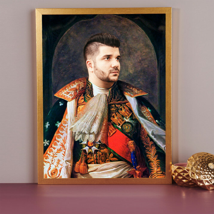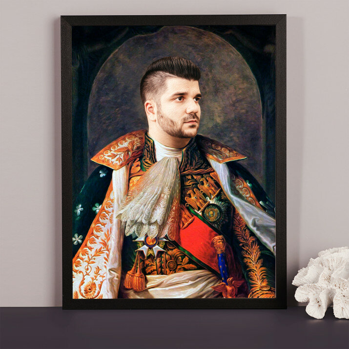 Jetzt auf dem Königsporträt sein! Das ist ein einzigartiges Bild, das wir von Ihrem Foto erstellen. Ein besonderes Geschenk, das einem geliebten Menschen das Gefühl geben kann, ein echter Herrscher zu sein! Alles, was wir brauchen, ist ein Foto von guter Qualität, damit unser Grafiker ein Porträt in dem von Ihnen gewünschten Stil anfertigen kann. Das so entstandene Geschenk wird Ihre Liebsten sicher beeindrucken!AUSFÜHRUNG