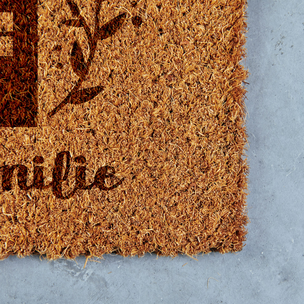 Bitte beachten Sie, dass die Lebensdauer der Fußmatte durch ungünstige Witterungsbedingungen und intensive Nutzung beeinträchtigt werden kann. Die Kokosmatte spielt vor allem eine dekorative Rolle und ist für einen mäßigen Gebrauch gedacht.