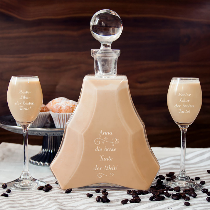 Solch ein Set macht immer einen großen Eindruck! Gravierte Karaffe und Gläser sind das perfekte Geschenk für alle Likörliebhaber, das mit dem klassichen und zeitlosen Aussehen bezaubert.