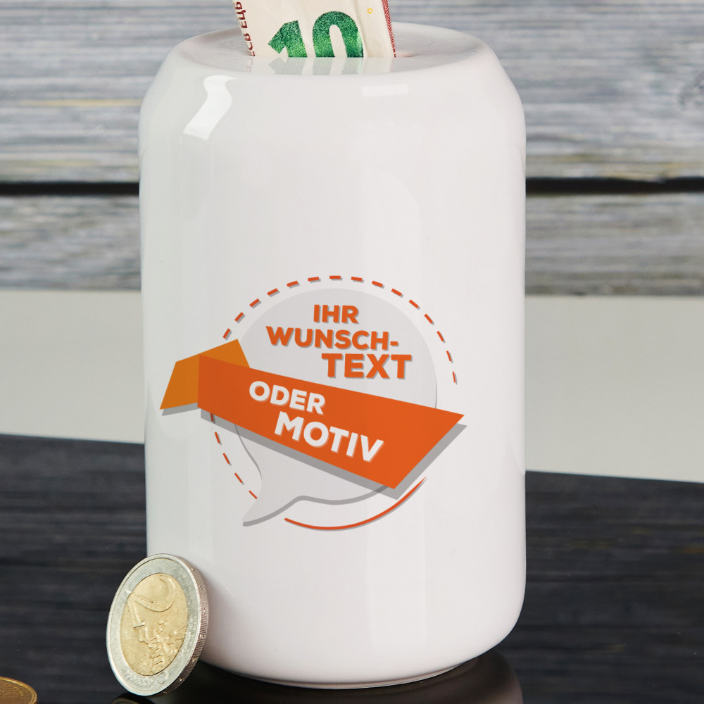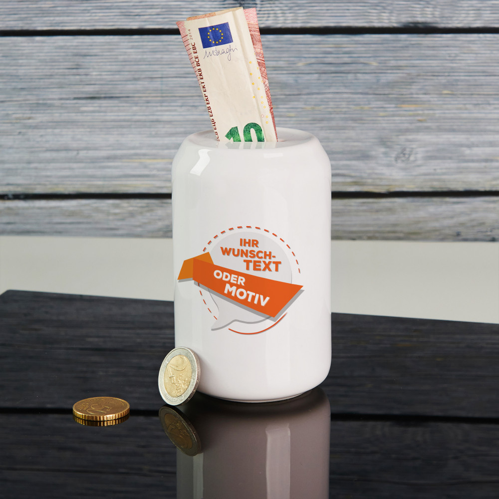 Spardose mit Aufdruck