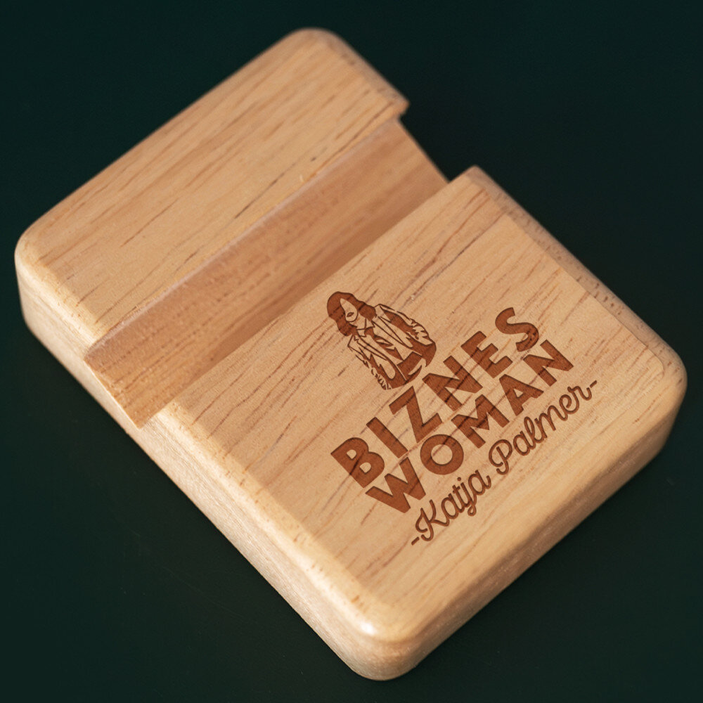 Ein Bambusständer mit einer effektvollen Gravur ist ein cooles und praktisches Telefonzubehör. Die richtig angepasste Form des Griffs ermöglicht es Ihnen, das Telefon sowohl in einer vertikalen als auch in einer horizontalen Position zu platzieren. Der Ständer hat eine natürliche Holzfarbe und sein minimalistischer Stil passt zu jedem Schreibtisch.