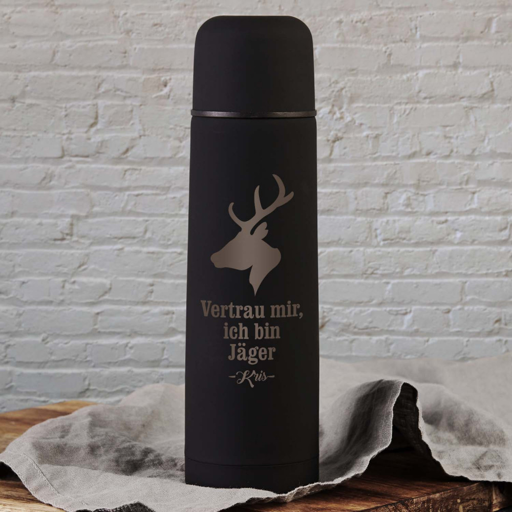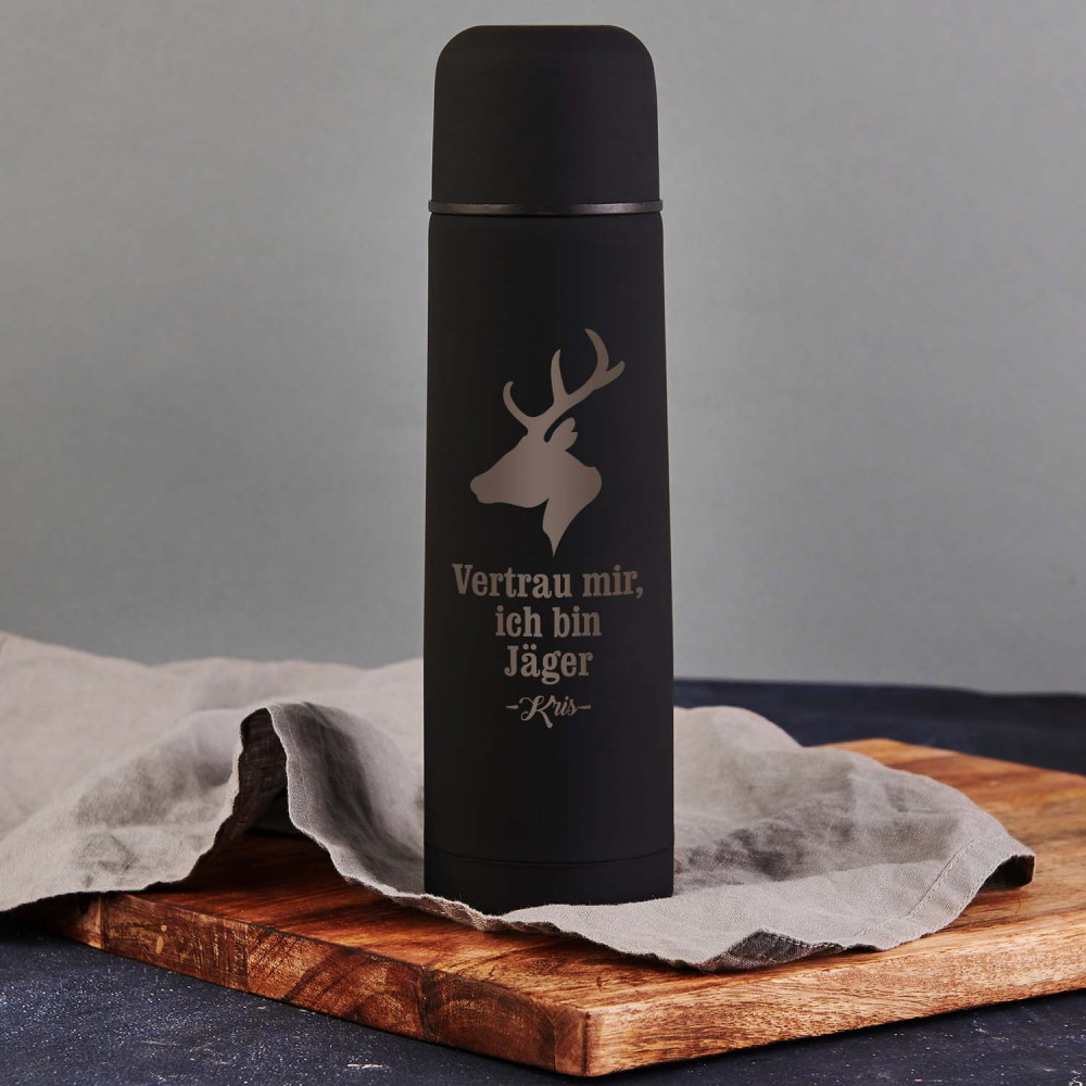 Die Thermoskanne 'Vertrau mir' ist ein zuverlässiger Reisebegleiter. Sie hält Getränke lange warm oder kalt.