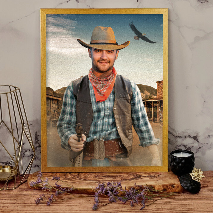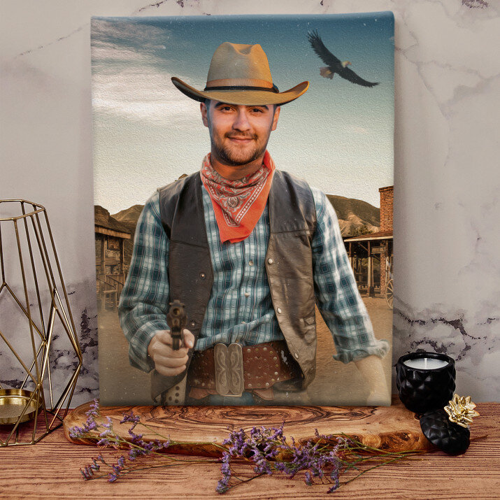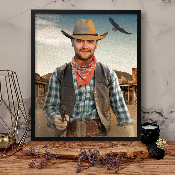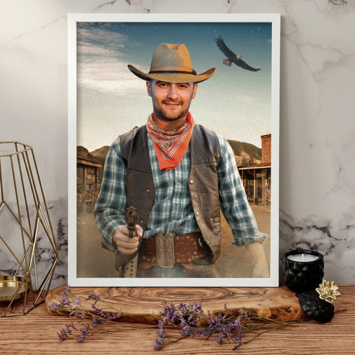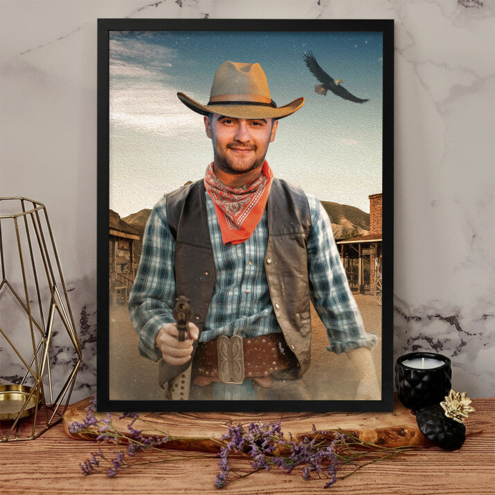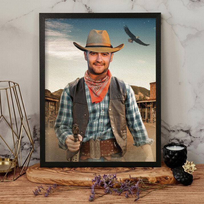 Ein Traum in unserer Geschenksammlung! Sicher kennen Sie jemanden, der heimlich von einem Flug ins All oder einem verrückten und gefährlichen Abenteuer im Wilden Westen träumt. Es wäre schwierig, es sofort zu erfüllen, aber Sie können dem Träumer immer ein wirkungsvolles Porträt geben, das ihn sicherlich glücklich machen wird.