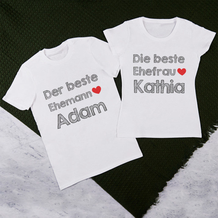 Verliebte sehen immer schön zusammen aus. Wenn Sie aber auch solche aufeinander abgestimmte T-Shirts tragen, sehen sie immer schöner aus! Personalisiertes T-Shirt Set ist ein perfektes Geschenk zur Hochzeit, zum Hochzeitstag oder Valentinstag.AUSFÜHRUNG