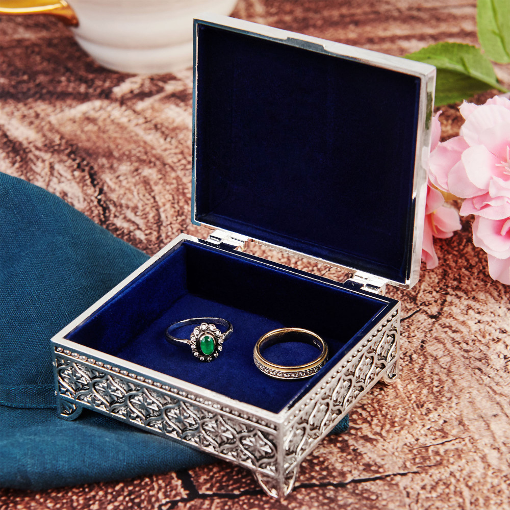 Wunderschön verziertes, versilbertes Schmuckkästchen.
