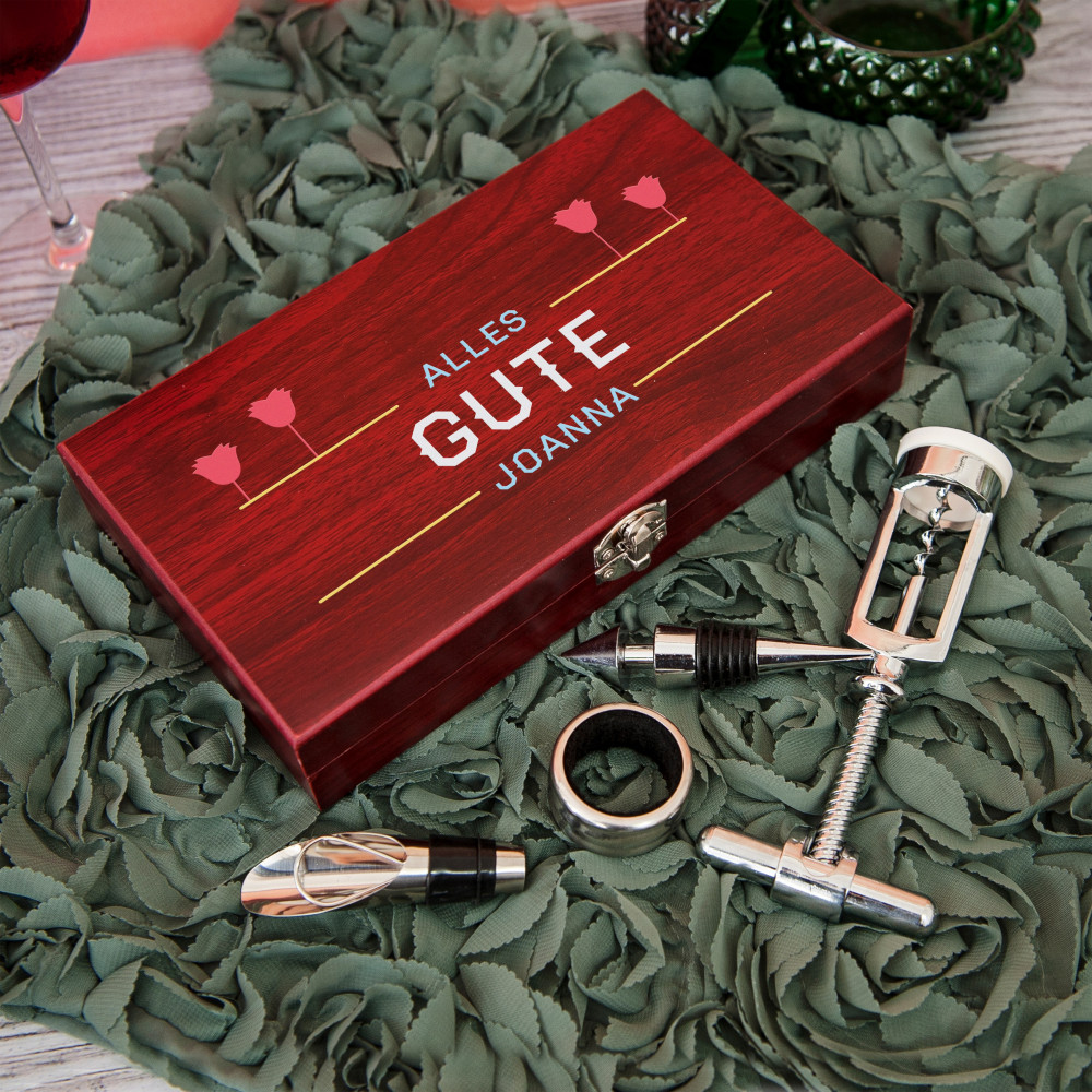 Dieses Weinzubehörset 'Geburtstag' ist das ideale Geschenk für jeden Geburtstag. Es enthält alle notwendigen Accessoires für eine Weinverkostung, und die Verpackung ist elegant. Ich bin begeistert!