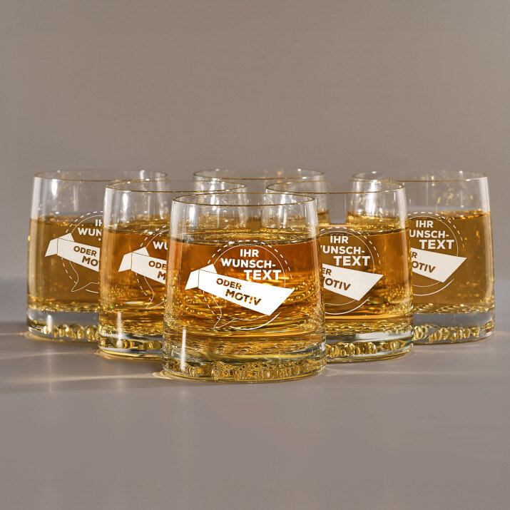 Sind Sie einer der edlen Whiskykenner? Jetzt können Sie Ihr Traumglas entwerfen, das Ihr Lieblingsgetränk weiter veredelt. Denken Sie an den Text und/oder das Motiv, die Sie darauf anbringen möchten, und teilen Sie uns die Details Ihres geheimen Plans mit. Ein Whiskyglas mit eigener Gravur wartet darauf, in Ihrem Besitz zu sein.Set mit gravierten Whiskygläsern eignet sich perfekt für ein Geschäftstreffen, einen Abend mit Freunden oder andere gesellschaftliche Veranstaltungen. Dank der einzigartigen Personalisierung spüren die Verkoster das Aroma von Tausenden von Aromen und Geschmacksrichtungen.